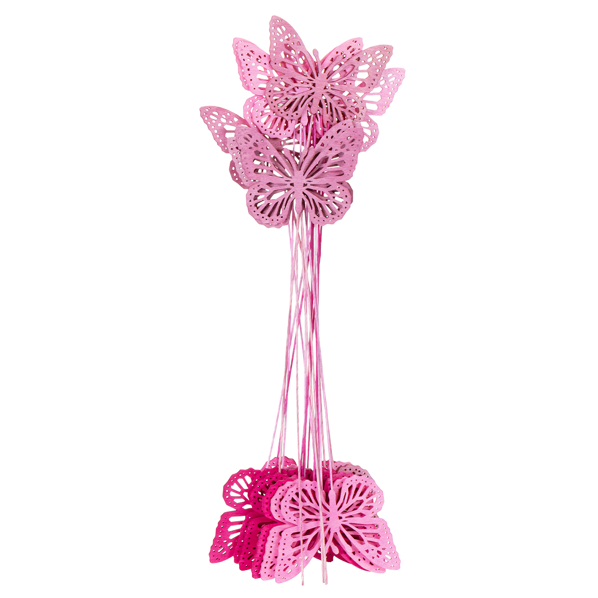 Decoratieve vlinders op steeltjes als delicate accenten voor tafels en plantenbakken, 8 cm, 18 stuks
