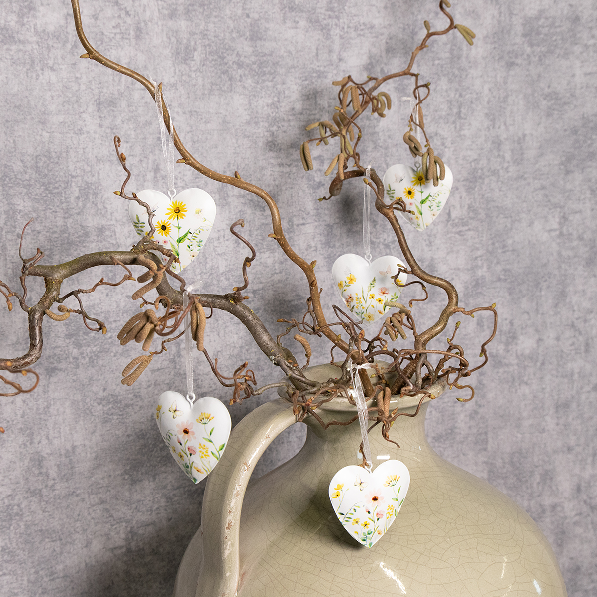 Hartvormige hangers met bloemenmotieven als wanddecoratie, 7 cm, 6 stuks