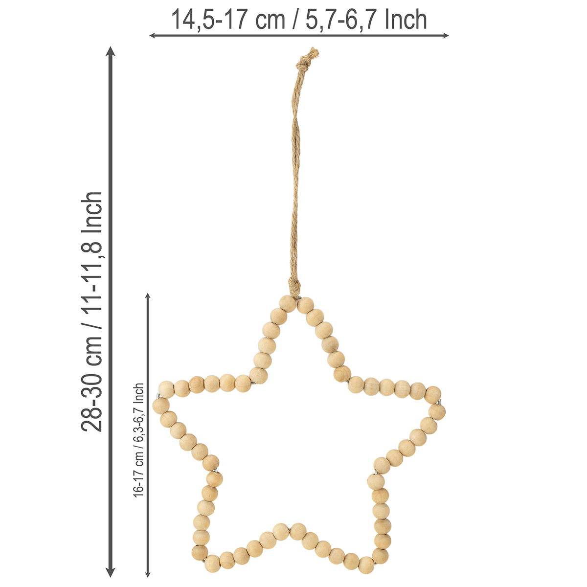 Les perles mesurent environ un centimètre de diamètre. Le cintre est constitué d'un cordon, également maintenu naturel. La décoration convient parfaitement comme décoration de sapin de Noël, mais aussi comme décoration suspendue ou décoration de fenêtre. Parce que le cintre de Noël est aussi beau de tous les côtés grâce aux perles rondes en bois.