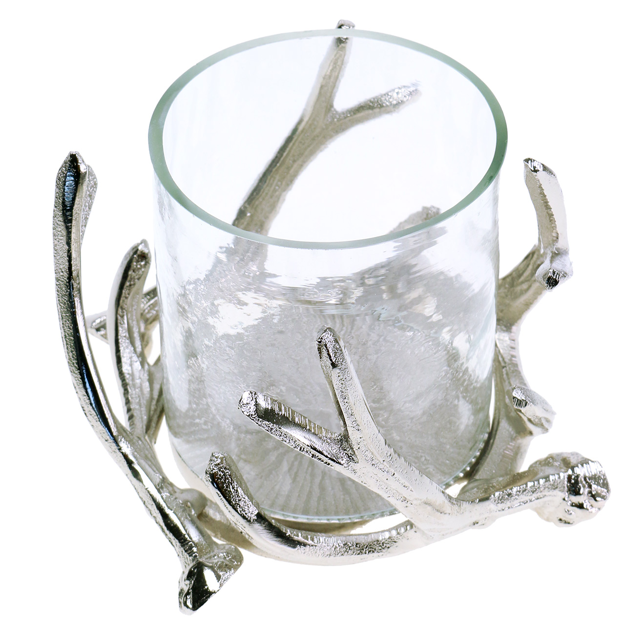 Photophore Bois de cerf Argent Ø16cm H11cm