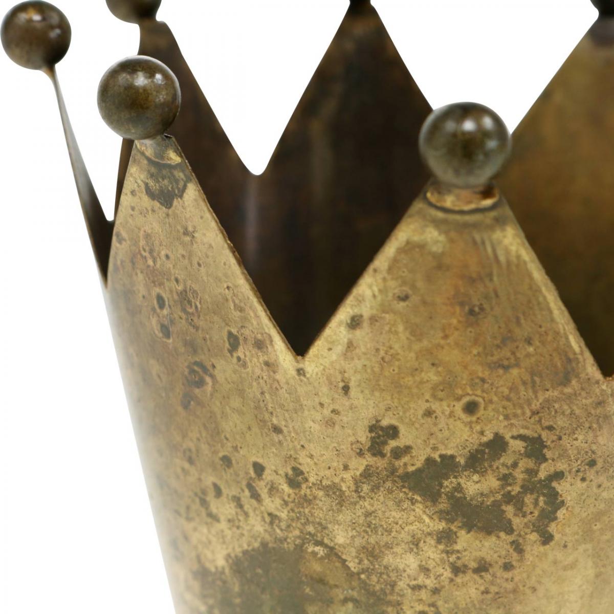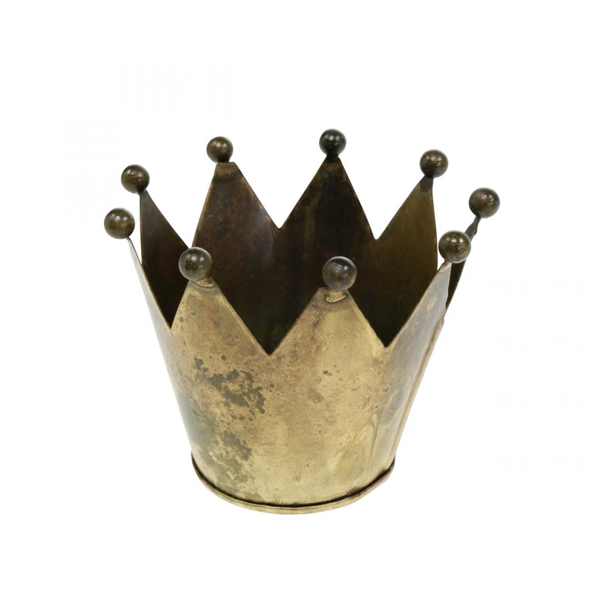 Kroon metaal antiek look messing theelichthouder Ø10cm H8cm