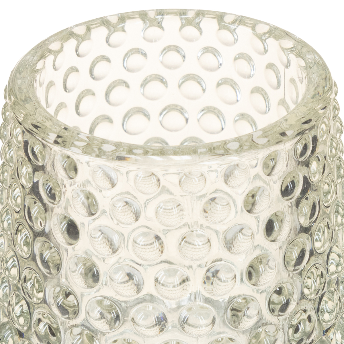 Nom du produit : Photophore en verre avec base à pois et rainures H15cm 2pcs
