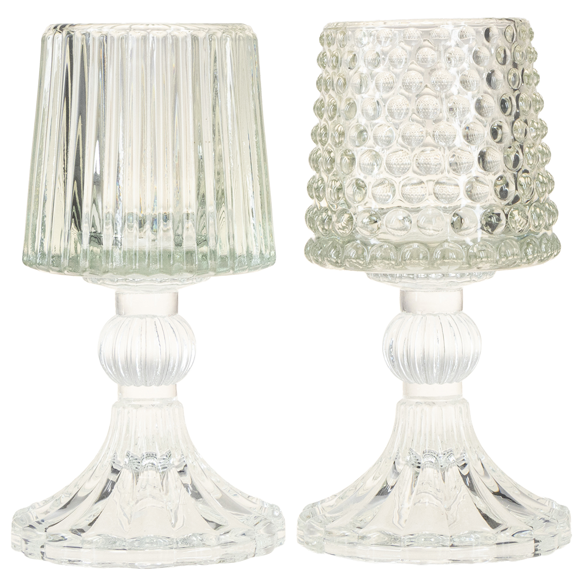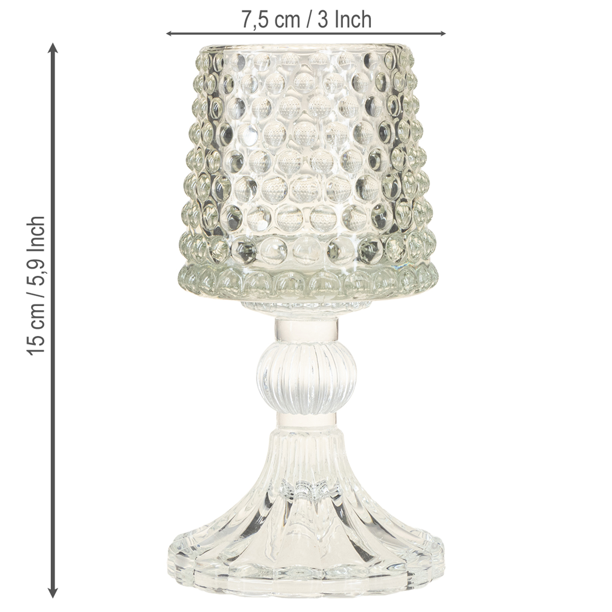 Glas Teelichthalter mit Fuß und dekorativen Punkten 2er-Set