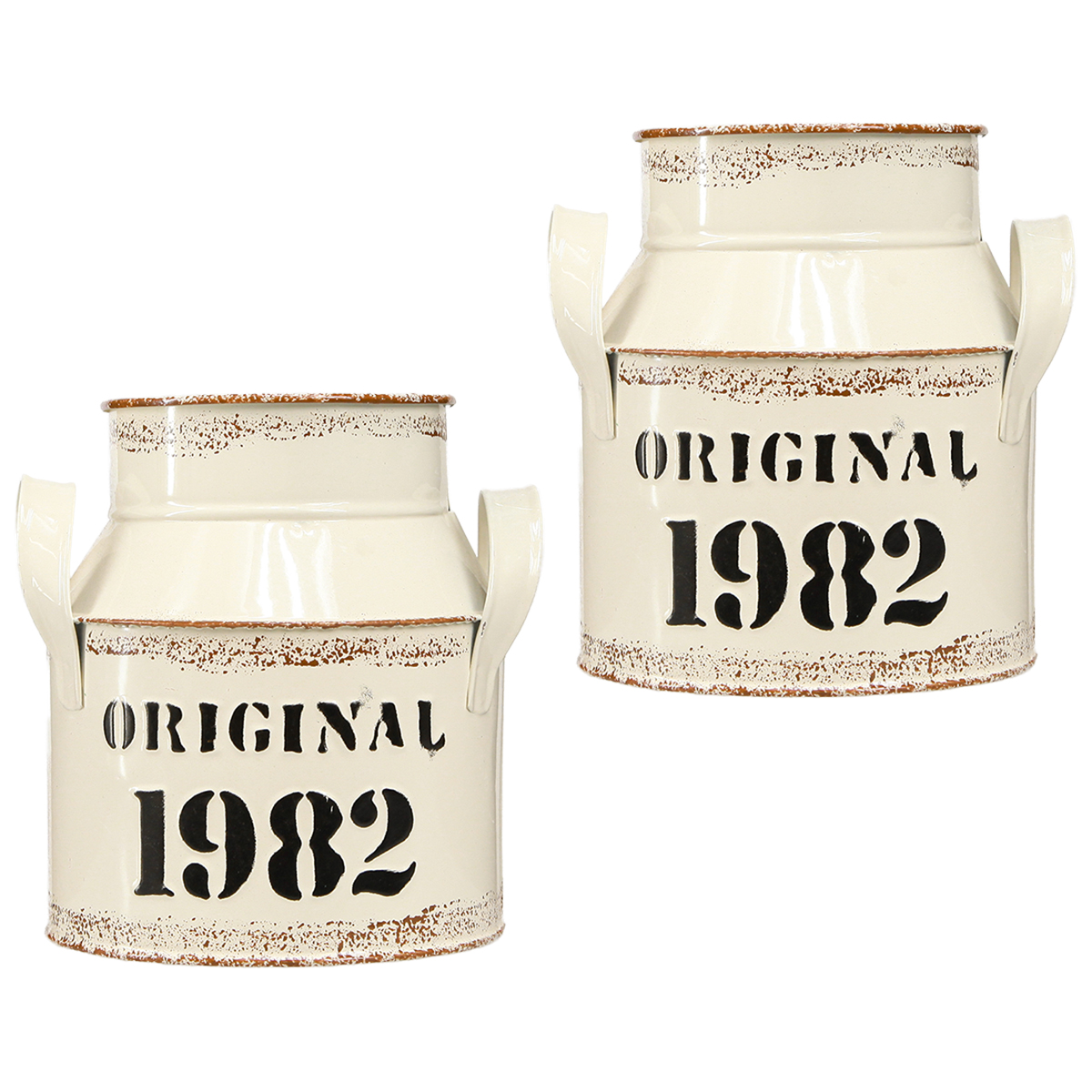 Pichet Métal Décoration "Original 1982" Crème Rouille H16cm 2pcs