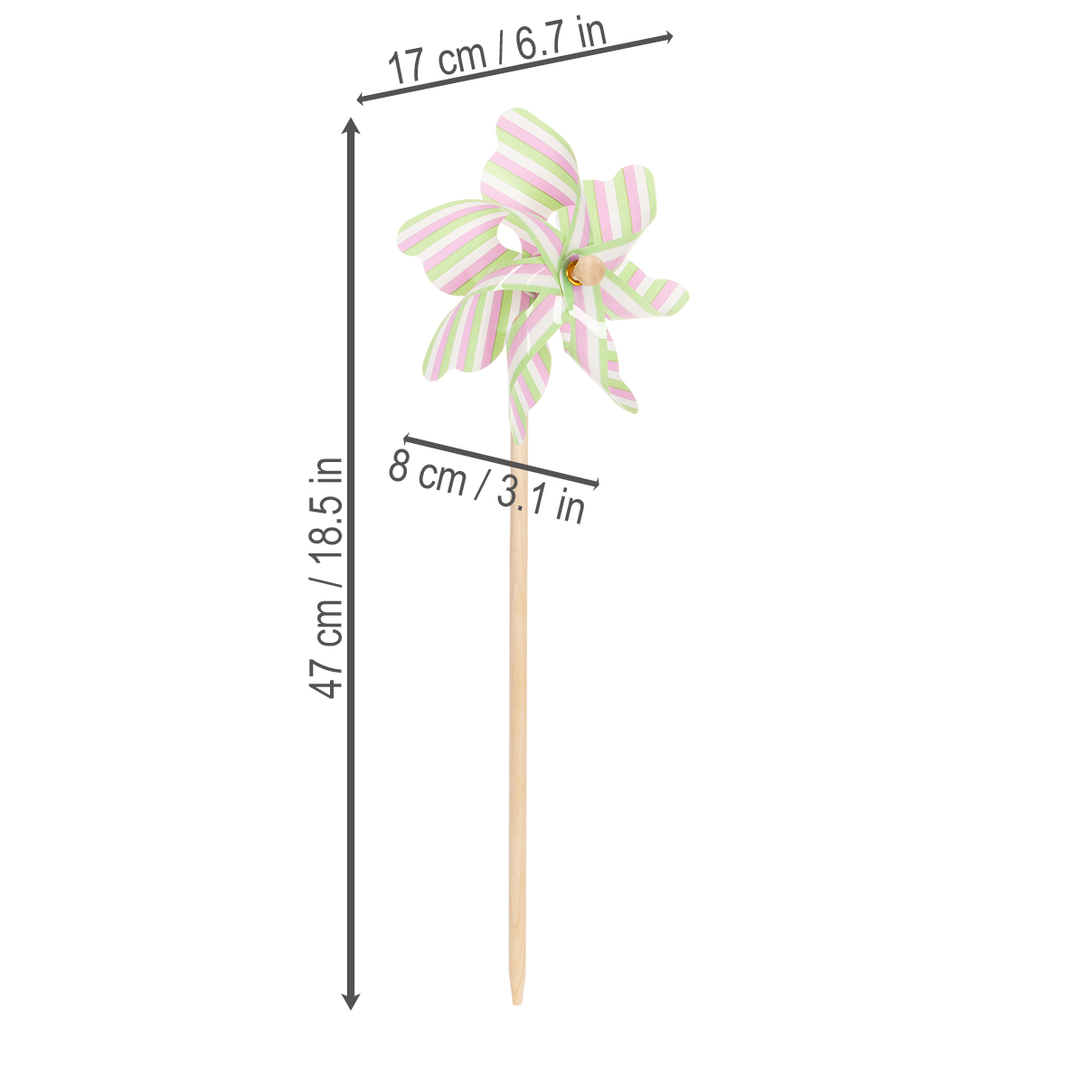 - Set bestaande uit 3 gestreepte windmolens in delicate pastelkleuren.