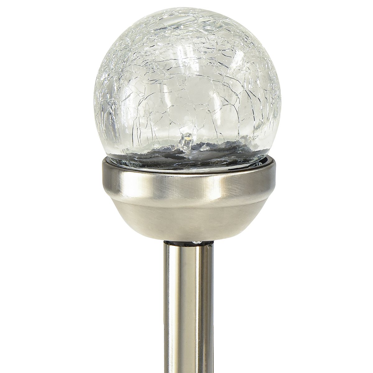 Die Solar-Gartenstecker sind schöne Solarleuchten für den Balkon oder für die Terrasse im Garten. Eyecatcher sind die Glaskugeln mit ihrer Splitter-Optik. Die schützen die LED und das Solar-Panel im Inneren.Die Kugelleuchte selbst sitzt auf einem Stab aus Edelstahl, was die originelle Gartenbeleuchtung noch hochwertiger macht. Im Edelstahl-Rohr versteckt, ist platzsparend der Spieß aus schwarzem robustem Kunststoff untergebracht. Den ziehen Sie einfach aus dem Edelstahlrohr heraus, drehen ihn um, stecken ihn in das Rohr und die gesamte Gartenleuchte schließlich in die Erde.