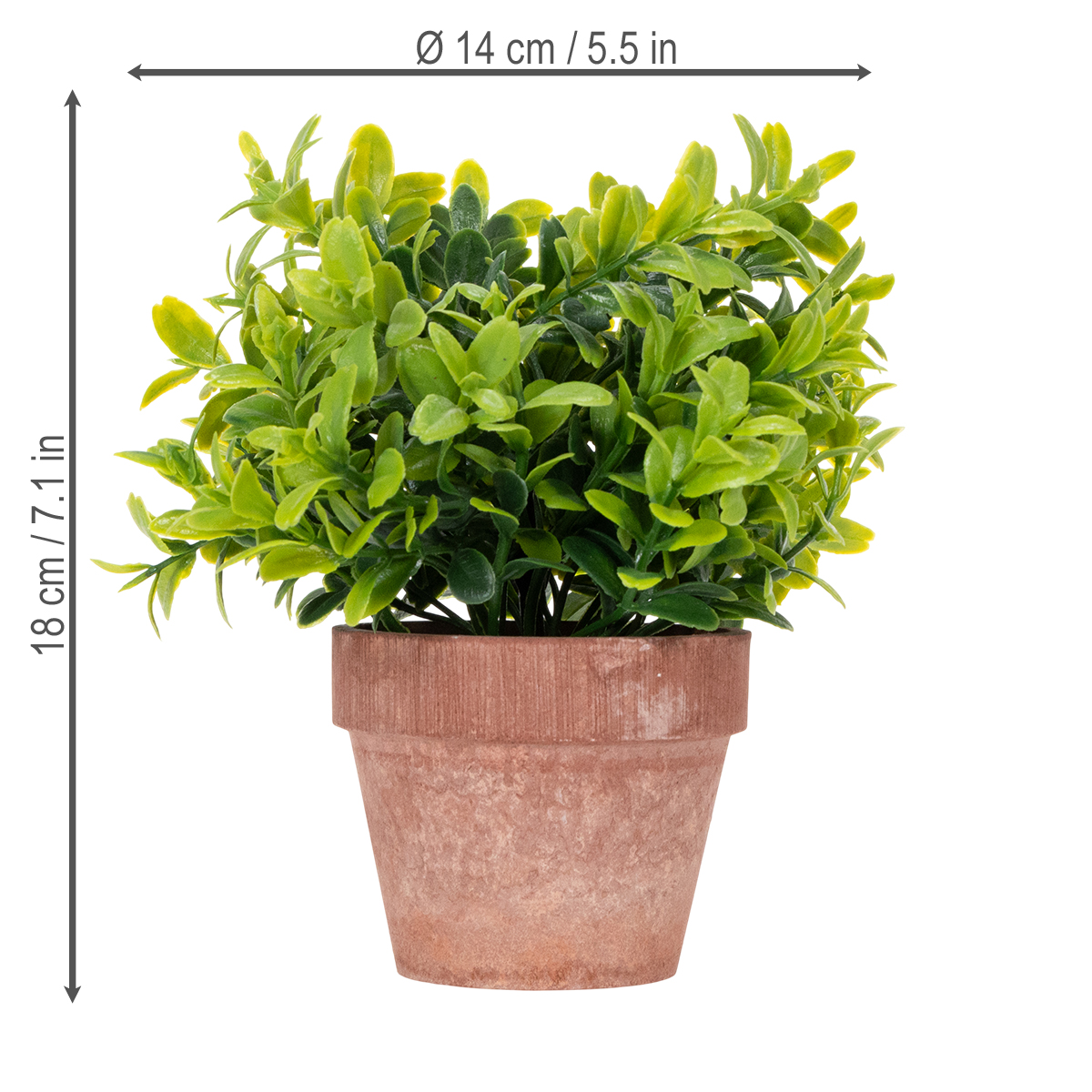Wilt u een frisse, groene touch aan uw huis geven zonder het gedoe van plantenverzorging? Onze kunstplant in een bloempot is de perfecte oplossing! Deze hoogwaardige driedelige set is 18 centimeter hoog en 14 centimeter in diameter en past harmonieus in elk interieur. De ongelooflijk realistische bladeren in een rijke groene tint voegen een natuurlijke charme toe aan uw ruimte. Of het nu voor de woonkamer, het opfleuren van uw kantoor of de badkamer is, deze onderhoudsvriendelijke kamerplanten zijn veelzijdig en bieden een perfecte combinatie van stijl en functionaliteit. De planten zijn gemaakt van duurzaam plastic, gaan lang mee en behouden hun aantrekkelijke uiterlijk. De ideale decoratieve plant voor iedereen die groen in huis wil halen en tegelijkertijd tijdloze elegantie wil omarmen.