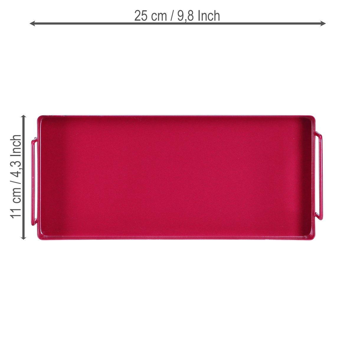 Met een lengte van 25 cm biedt dit dienblad voldoende ruimte voor uw ontbijt, elegant glaswerk of stijlvolle kaarsenarrangementen. De opvallende kleur is in het oog springend, maar toch aangenaam ingetogen. Het is dan ook geen wonder dat dit stijlvolle dienblad uw bureau netjes houdt of uw tafeldecoraties perfect presenteert tijdens feestjes. Klinkt als precies wat uw huis nodig heeft, toch? Lees dan verder en ontdek meer over de voordelen van dit prachtige dienblad!