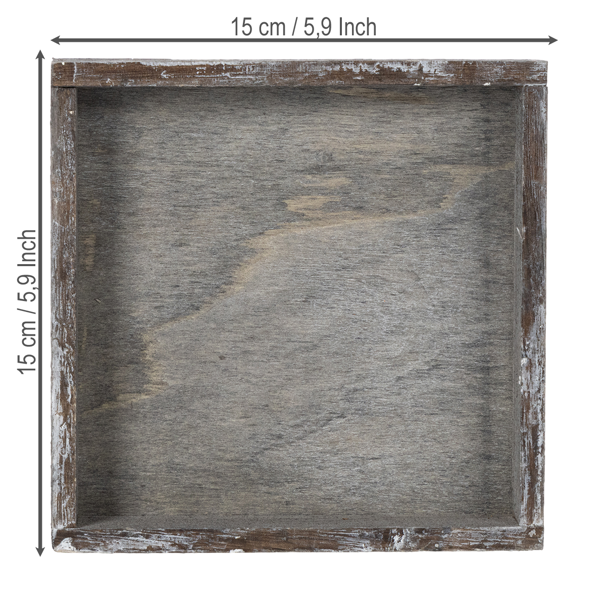 Ce plateau carré en bois séduit par sa polyvalence et son charme naturel. Au quotidien comme pour les grandes occasions, ce plateau décoratif met en valeur vos objets décoratifs avec élégance. Ses dimensions compactes (15 cm de long, 15 cm de large et 3 cm de haut) lui permettent de trouver facilement sa place sur les petites tables ou étagères. De plus, sa finition bois gris rustique lui confère un charme indéniable et s'harmonise avec différents styles, tels que le vintage, le champêtre, le bohème ou le scandinave.