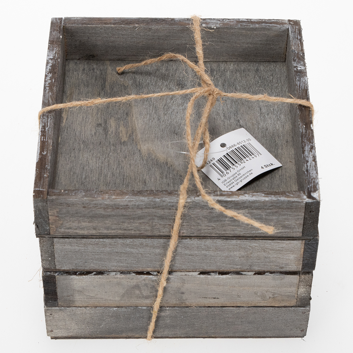 Suchen Sie nach einer eleganten Möglichkeit, Ihrem Tisch oder Ihrer Einrichtung das gewisse Etwas zu verleihen? Etwas, das schlicht und doch ein absoluter Hingucker ist? Mit unserem rustikalen Deko Tablett aus Holz treffen Sie genau ins Schwarze! Dieses stilvolle Accessoire vereint charmante Vintage-Optik mit Funktionalität – die perfekte Mischung für alle, die Wert auf natürlich schöne Dekoration legen. Ob auf dem Esstisch mit Kerzen, als schmuckvolle Basis für Pflanzenarrangements oder zur Aufbewahrung Ihrer Lieblingsaccessoires, wie Schmuck, dieses quadratische Tablett ist vielseitig einsetzbar. Der graue Holzton und die sorgfältig gearbeitete, rustikale Oberfläche machen jedes Stück zu einem Unikat. Und das Beste: Sie erhalten gleich vier dieser wunderbaren Tabletts! Praktisch, oder?