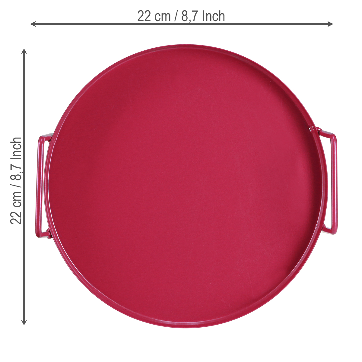 Dieses runde Metalltablett in kräftigem Rot mit einem Durchmesser von 22 cm ist nicht nur ein echter Hingucker, sondern auch besonders funktional. Die matten Griffe sorgen für einen sicheren Halt und machen das Tablett so handlich wie praktisch. Ganz gleich, ob Sie Ihren Gästen stilvoll Getränke und Snacks servieren oder Ihre Lieblingspflanzen in Szene setzen möchten – das rote Tablett macht immer eine gute Figur. Die robuste Metalloberfläche ist pflegeleicht und überzeugt durch Langlebigkeit – einfach ein verlässlicher Begleiter in jeder Situation.