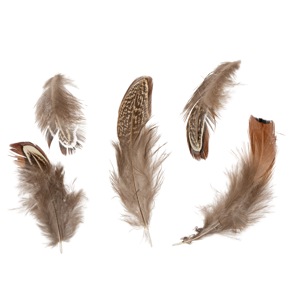 Knutselen met veren is gewoon leuk! Of het nu gaat om seizoensdecoraties, cadeaus of als blikvanger in je huis – veren bieden bijna onbeperkte mogelijkheden om creatief aan de slag te gaan. Werk je graag met natuurlijke materialen? Dan zijn onze naturelkleurige fazantenveren precies wat je zoekt. Met een lengte van 5 cm zijn ze ideaal voor delicate projecten en zorgen ze tegelijkertijd voor opvallende accenten. Wat dacht je van een lenteachtig tafelstuk of een met liefde gemaakt doe-het-zelf-cadeau? Deze veren zijn licht, veelzijdig en hun natuurlijke bruine en beige tinten geven elk project een warme, harmonieuze uitstraling.