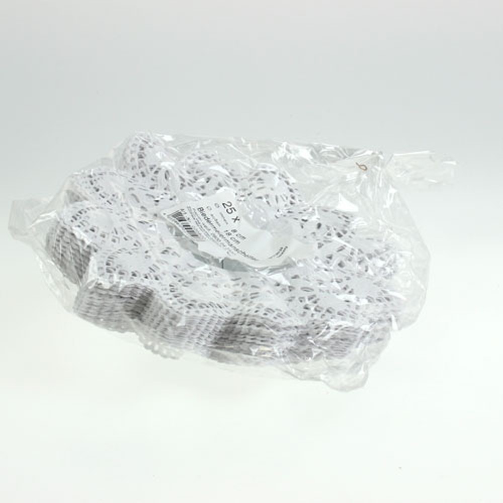 De Biedermeier-manchetten in het wit worden geleverd als opbergpakket met in totaal 25 stuks en hebben allemaal een buitendiameter van ongeveer 18 centimeter. De binnendiameter is ongeveer 8 centimeter. Je hebt ook de mogelijkheid om de manchetten te kleuren en aan te passen.