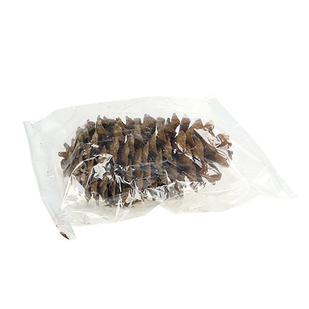 De kegel van de natuurlijke suikerpijnboom heeft een grootte van ongeveer 25 centimeter en kan als een natuurlijk product enigszins variëren in grootte, afhankelijk van de verpakking. De ongekleurde kegel heeft verschillende tinten bruin, die afhankelijk van de kijkhoek een geweldig kleurenspel vertonen en een patroon creëren dat gemakkelijk doet denken aan de bonte vacht van de luipaard. U kunt de indrukwekkende kegel dus ook prachtig gebruiken voor de weergave van uw etalage en daar een decoratie maken met de thema's bos, winter, herfst of zelfs Kerstmis. Maar ook op uw vensterbank, in een decoratieve kom voor de woonkamertafel of in uw Thanksgiving-decoratie, weet de grote kegel van suikerdennen te scoren en is een echte aanwinst voor uw woonruimte.