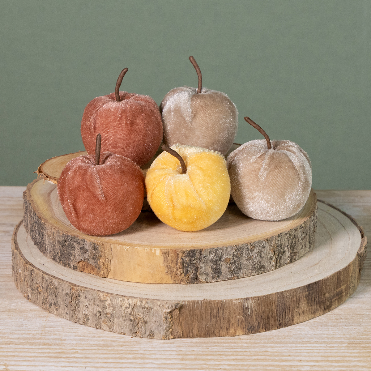 Verleihen Sie Ihrer Dekoration einen Hauch von Eleganz und Raffinesse mit unseren Deko-Äpfeln aus Stoff. Die Samt-Äpfel in den edlen Herbstfarben Rotbraun, Beige und Gelb bringen einen samtigen Schimmer in jede Umgebung. Diese kleinen Deko-Äpfel sind perfekt für die Umsetzung minimalistisch inspirierter Designs und fügen sich mühelos in verschiedene Stilrichtungen ein – vom modernen Landhausstil bis hin zum eleganten Shabby Chic. Bestehend aus einem Styroporkern, ist jeder Apfel mit künstlichem Samt überzogen für eine feine Struktur und ein angenehmes Finish. Mit einem Durchmesser von circa 5 cm und einer Höhe von etwa 6 cm passen diese Deko-Früchte aus Stoff ideal in herbstliche Tischdekorationen im Esszimmer oder machen als Blickfang in Schaufenstern und im Regal eine besonders gute Figur. Durch die Kombination mit weiteren saisonalen Produkten aus unserem Sortiment bei Floristik24 können Sie Ihre Kreativität frei entfalten.