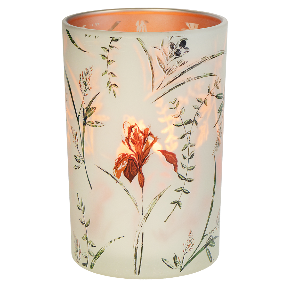 Ce photophore en verre à motif floral est bien plus qu'un simple bougeoir : c'est un véritable accessoire de décoration. Ses délicats motifs floraux beiges, verts et rouges lui confèrent une allure naturelle et harmonieuse, idéale pour un décor vintage ou champêtre. Fabriqué artisanalement, chaque photophore est unique. Mesurant 18 cm de hauteur et 12 cm de diamètre, il offre un espace généreux pour les bougies chauffe-plat classiques comme pour les bougies décoratives. Le verre de haute qualité laisse magnifiquement filtrer la lumière et la chaleur, créant une ambiance particulièrement magique dans une lumière tamisée.