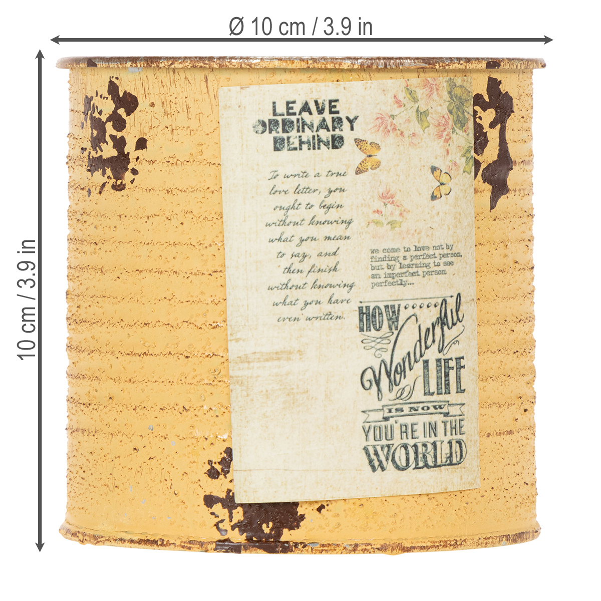 La boîte de conserve en forme de boîte décorative en abricot est une grande tendance pour les plantes d'été ! Classiquement en métal, le pot de fleurs affiche toujours la couleur argentée claire d'une boîte de conserve à l'intérieur. L'extérieur de la jardinière est peint en deux couleurs rouille et orange et décoré en plus de taches de rouille artificielles. Une étiquette rêveuse et nostalgique complète la décoration vintage du petit pot de fleurs en métal. Bien sûr, le pot de fleurs en métal a des bords lisses au lieu des bords tranchants de son modèle. Ainsi, vous pouvez également utiliser facilement la décoration en étain pour faire de l'artisanat avec des enfants et des jardiniers.