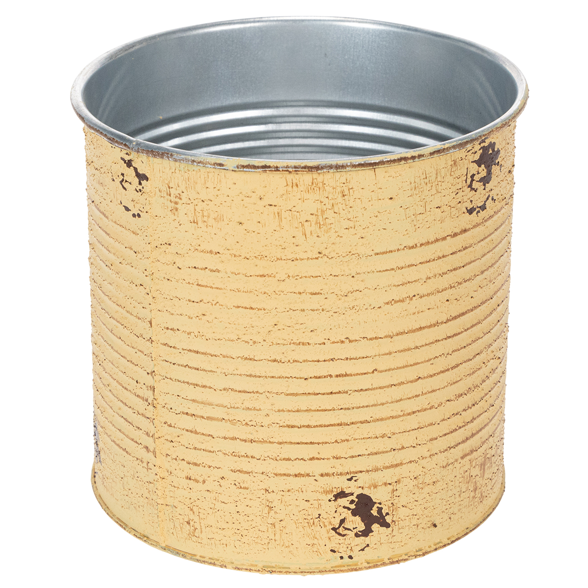 Pour la plantation, il faut tapisser le bac décoratif en abricot de papier d'aluminium, penser au drainage et, en cas d'installation à l'extérieur, percer des trous dans le sol pour drainer l'excès d'eau. La boîte de conserve rustique est également disponible dans différentes couleurs pastel et d'autres tailles.