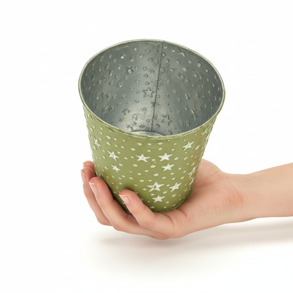 - Pot de fleur en métal gaufré d'étoiles