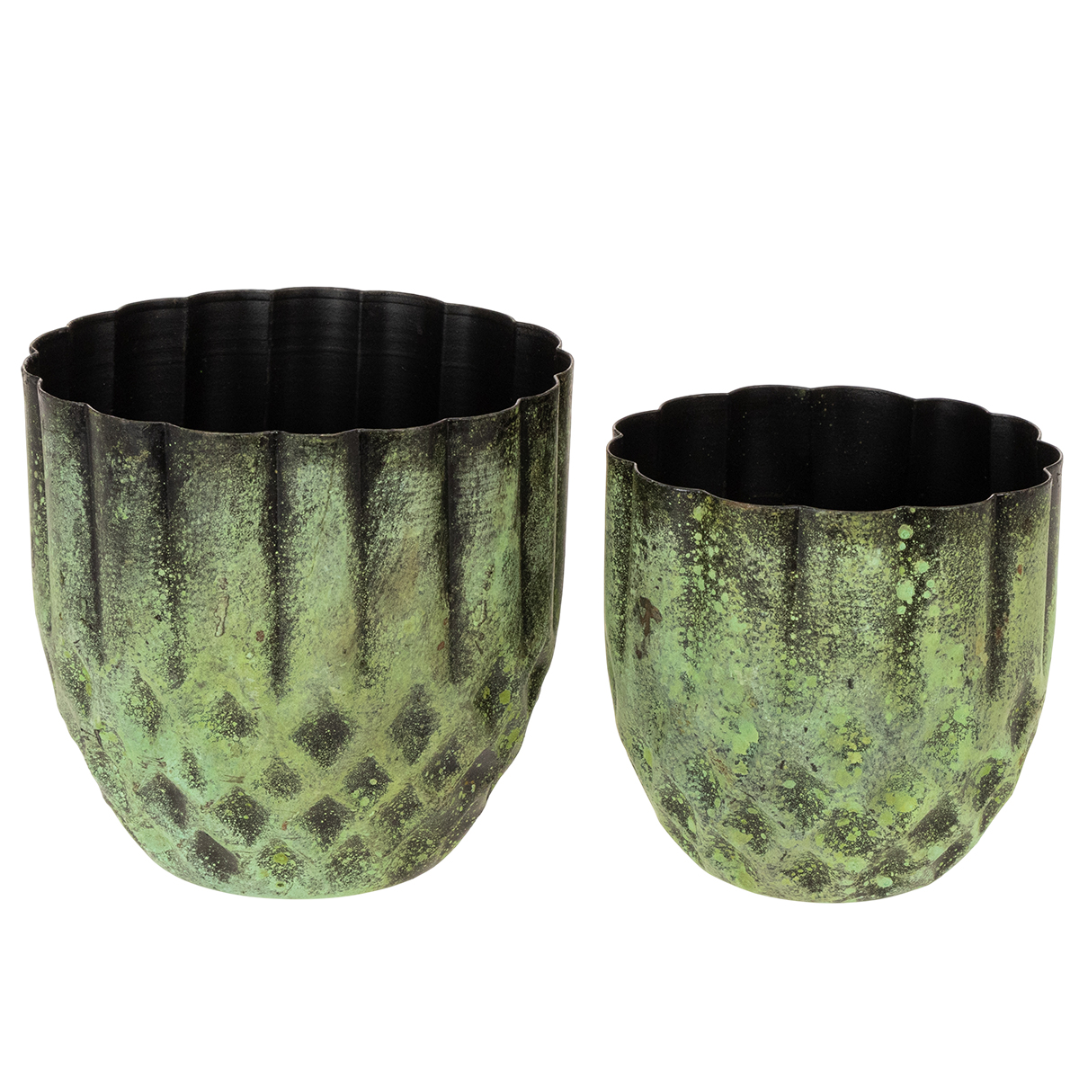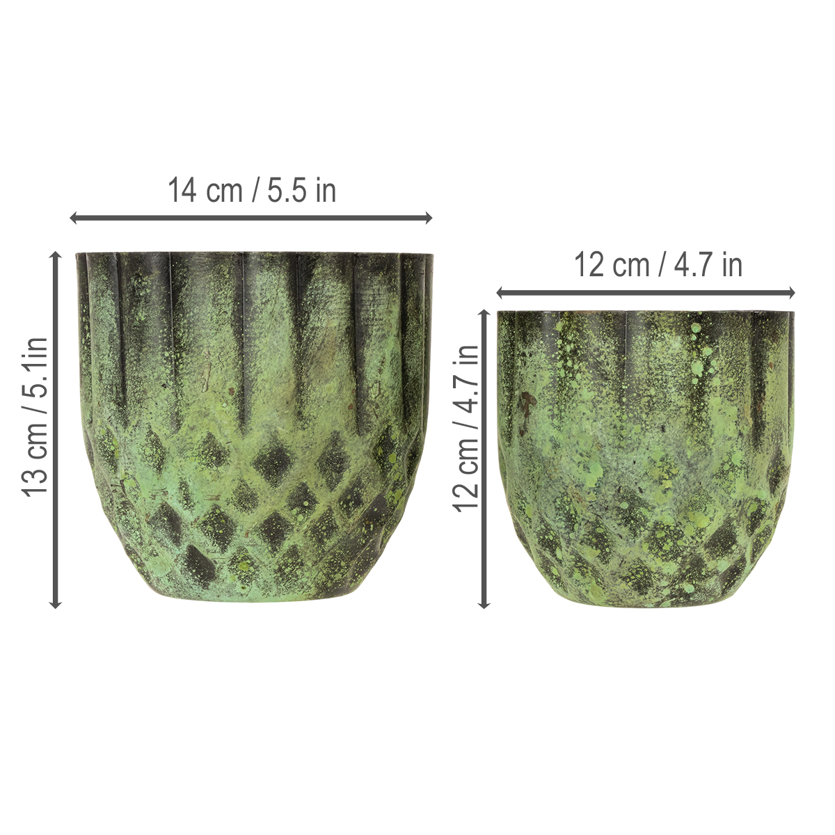 Pot de fleurs vintage en métal, vert, Ø 14/12 cm, lot de 2