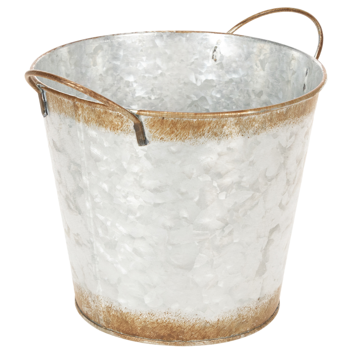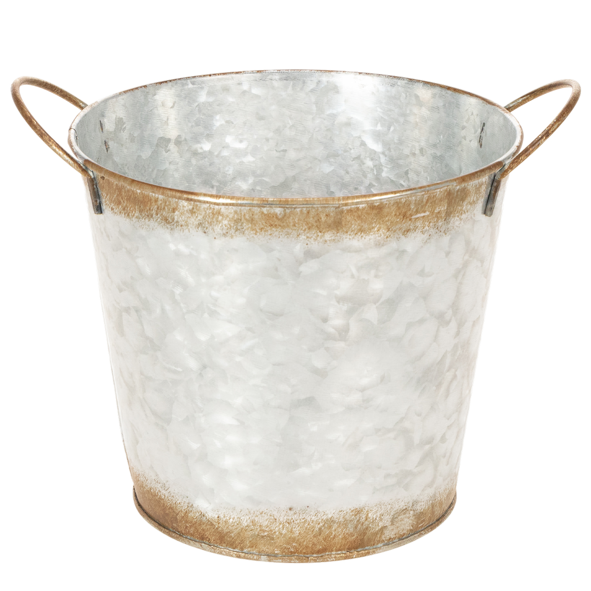 Pot décoratif avec anses, seau de plantation, récipient en métal, argenté, acier patiné, Ø 17 cm H 16,5 cm