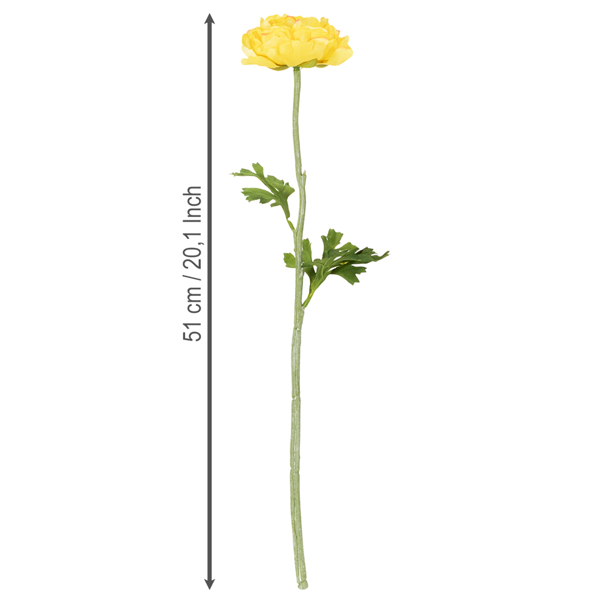 Mit diesen Ranunkeln holen Sie sich hochwertige Kunstblumen ins Haus, die nicht nur praktisch, sondern auch ästhetisch ansprechend sind. Jede Einzelblume dieser Dekoblumen ist mit Liebe zum Detail gestaltet: die zarten Blütenblätter wirken geschichtet und lebensecht, und die sattgrünen Blätter setzen die strahlende Gelbnuance ideal in Szene. Das robuste Material sorgt dafür, dass die Blumen jahrelang aussehen wie am ersten Tag, ohne dass sie verwelken oder ihre Farben verlieren.