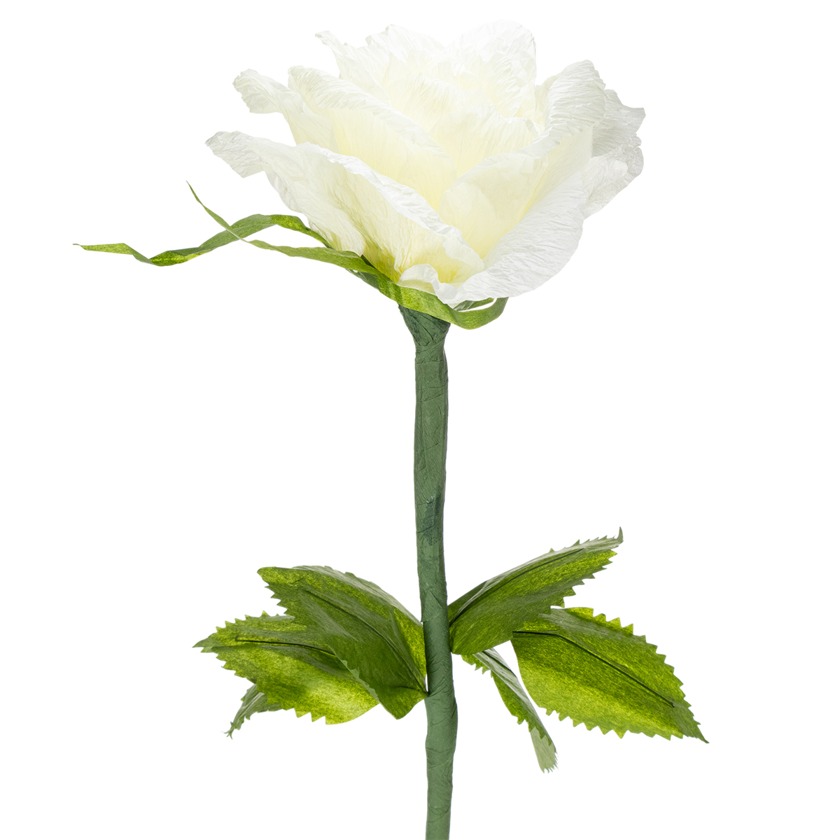 Onze kunstmatige witte roos maakt indruk met zijn opvallende formaat, zorgvuldige afwerking en veelzijdige toepassingen. De ingetogen elegantie maakt hem perfect geschikt voor diverse interieurstijlen, van klassiek en modern minimalisme tot boho chic. De natuurlijke uitstraling van de papieren bloesems, gecombineerd met de groene steel en bladeren, zorgt voor een opmerkelijk realistisch effect. Iedereen die de moeite van het verzorgen van echte bloemen wil vermijden, zal dol zijn op dit gebruiksvriendelijke alternatief.
