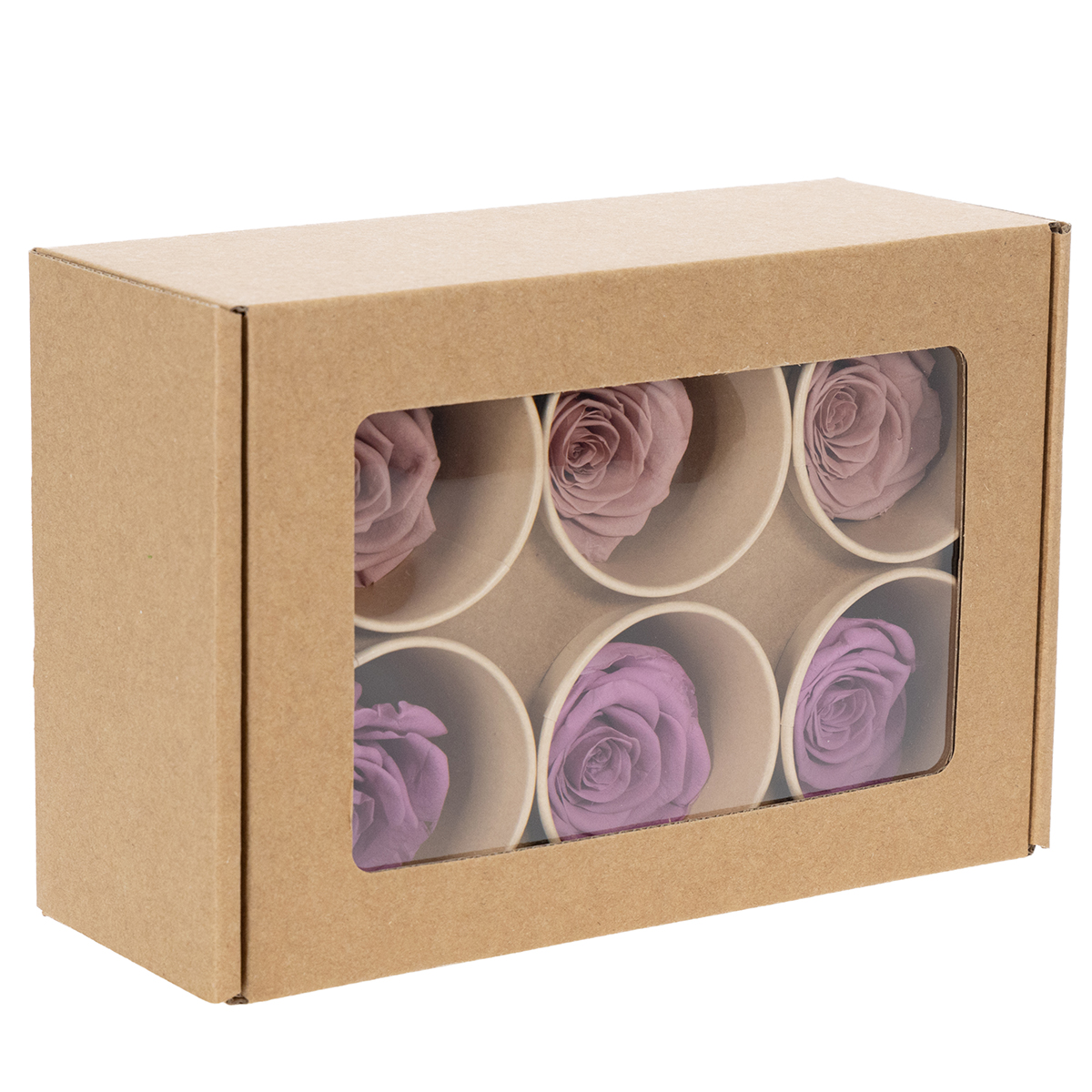 Nos roses stabilisées d'un élégant lilas sont de véritables atouts, parfaites pour sublimer vos moments précieux. Vous recevrez six magnifiques roses, chacune mesurant 4 cm de diamètre et 5 cm de hauteur. Grâce à un procédé de stabilisation spécial, elles conservent leur forme, leur couleur et leur beauté naturelles sans aucun entretien. Ni arrosage, ni flétrissement : ces roses sont faites pour durer. Disposez-les en un élégant centre de table pour votre mariage, utilisez-les pour vos créations artistiques ou offrez-les en cadeau romantique pour un anniversaire. Leur douce teinte lilas crée une atmosphère de sérénité et s'harmonise à merveille avec une décoration moderne ou des touches vintage.