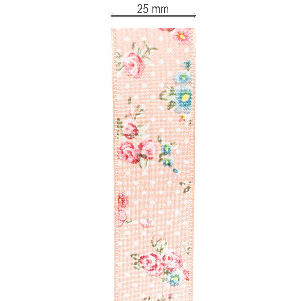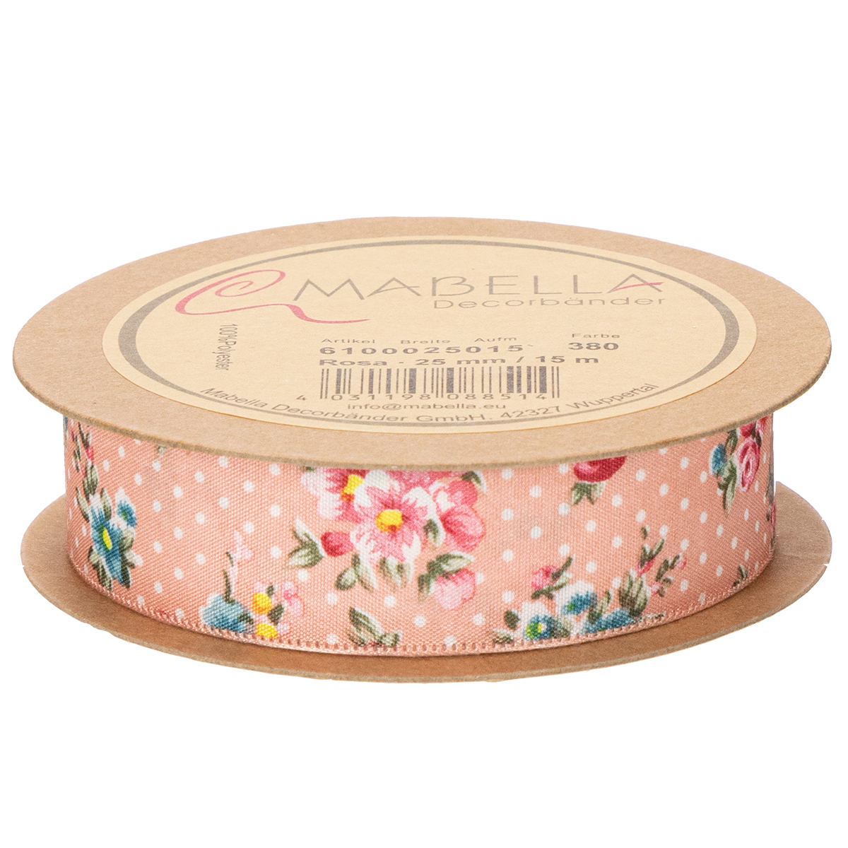 Cadeaulint met bloemenpatroon voor speelse cadeaus en knutselwerkjes, 2,5 cm breed, 15 m lang