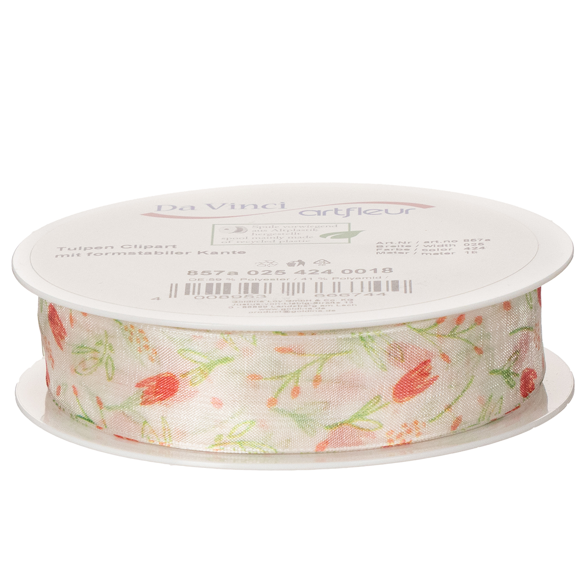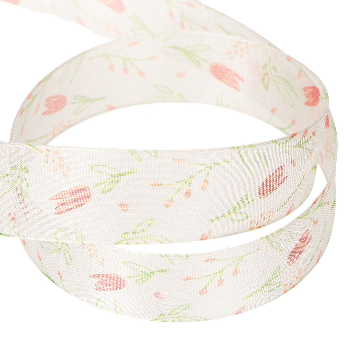 Ruban cadeau à motif tulipe, idéal pour les occasions spéciales et la décoration saisonnière, 2,5 cm de large, 18 m de long