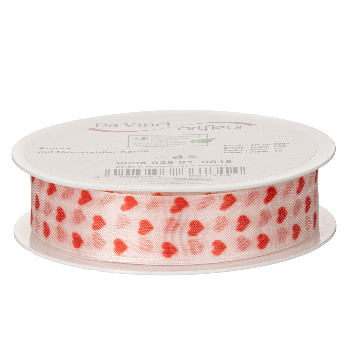 Cadeaulint met hartjes, ideaal voor creatieve verpakkingsideeën en persoonlijke cadeaus, 2,5 cm breed, 15 m lang