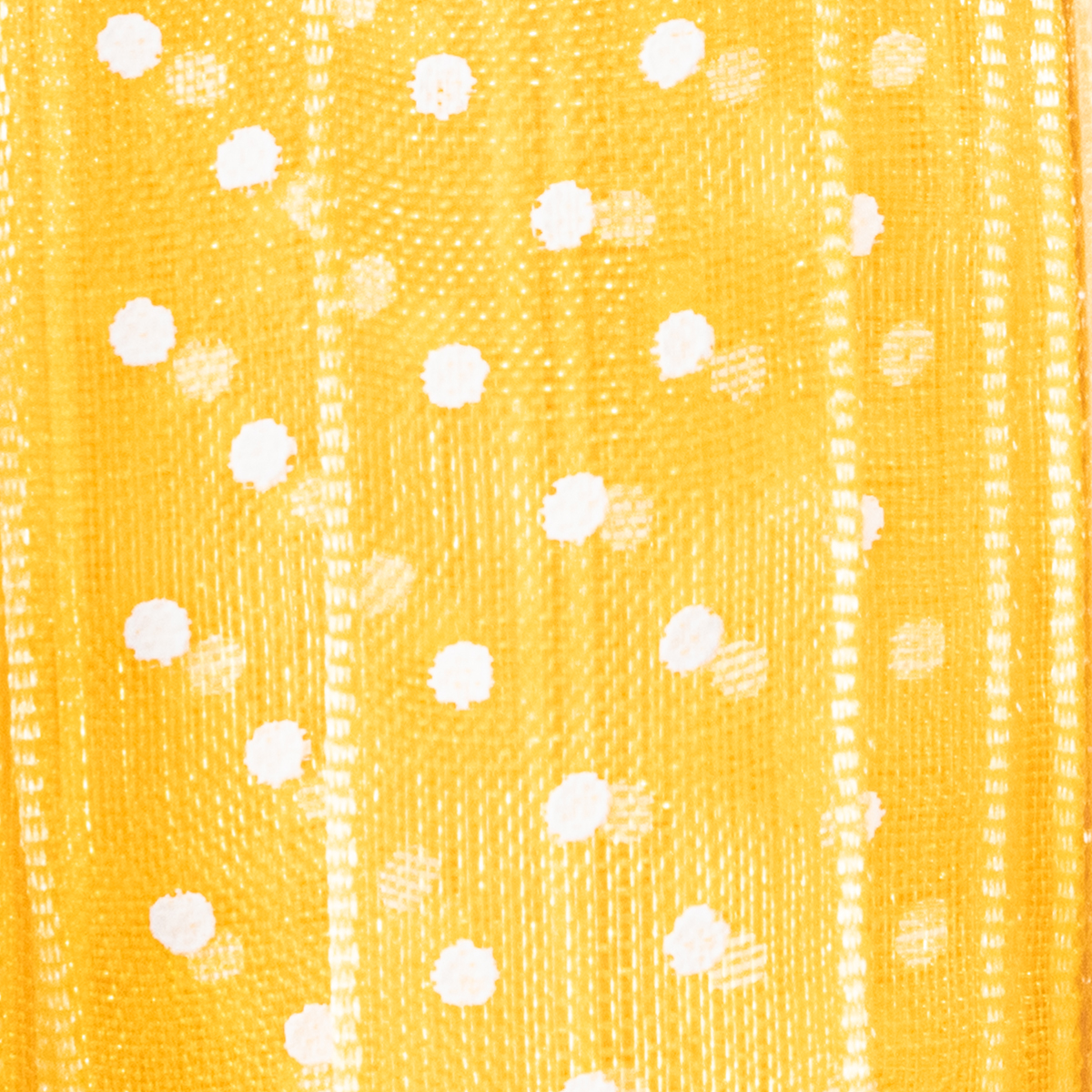 Het gele cadeaulint met de witte stippen is gemaakt van 100% polyester en meet ongeveer 25 millimeter breed en ongeveer 20 meter lang. Je krijgt het op een kleine, handige spoel van plastic, die je gemakkelijk in een lade of in de naaimand kunt bewaren.