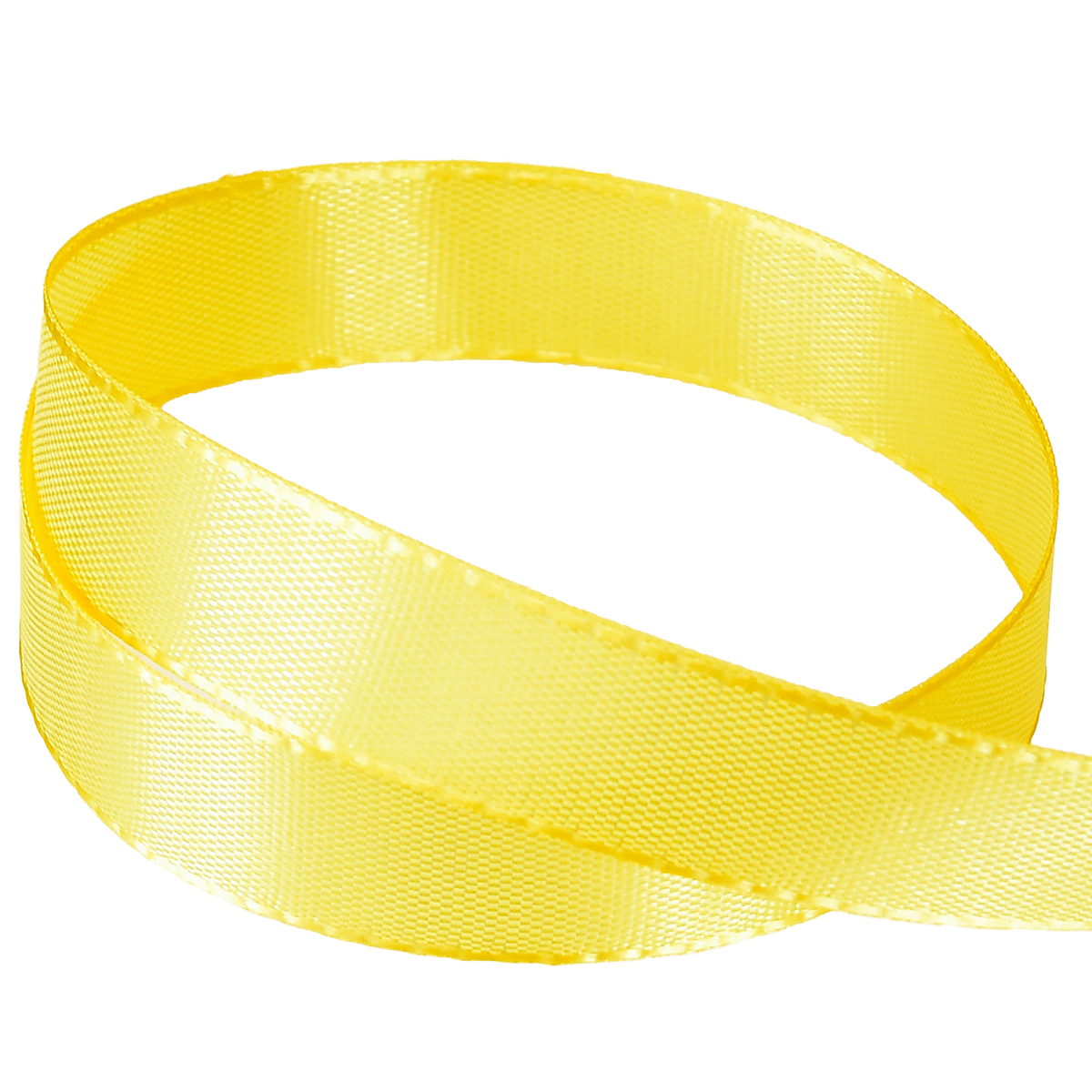 Het gele cadeau- en decoratielint van 100% polyamide is ongeveer 15 millimeter breed en ongeveer 50 meter lang. Het is gewikkeld op een handige plastic spoel.