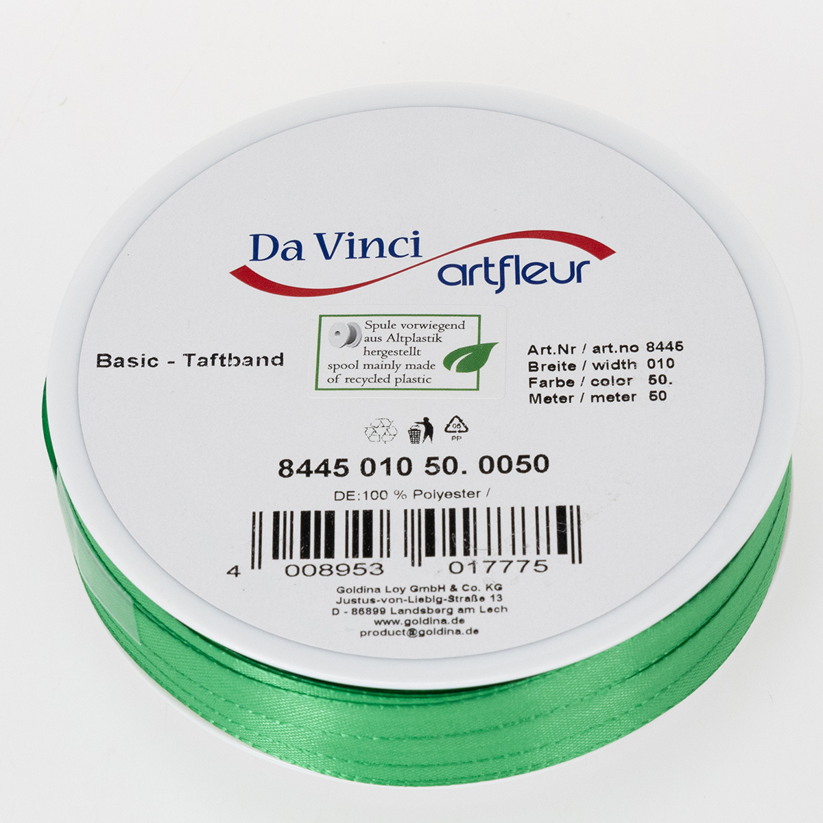 Das Dekorationsband in Grün bringt alles mit, was Sie sich von einem vielseitigen Stoffband wünschen. Mit einer Breite von 10 Millimetern und einer Länge von 50 Metern ist es sowohl handlich als auch ergiebig. Seine leuchtende, aber dennoch dezente grüne Farbe passt wunderbar zu floralen Arrangements, ob in Kombination mit frischen Blumen oder als Teil einer schlichten, eleganten Tischdekoration. Der seidige Glanz macht es zu einem Blickfang, während die feste Webkante ein Ausfransen verhindert – perfekt für langanhaltende Arbeiten.