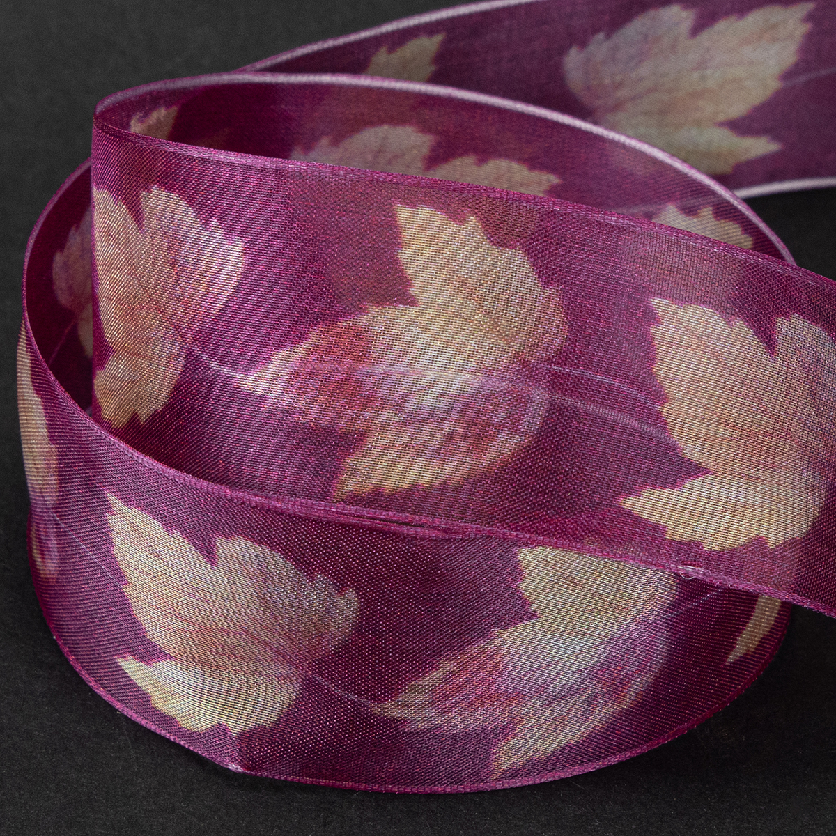 Ruban cadeau feuilles d'érable ruban violet automne 40mm 15m