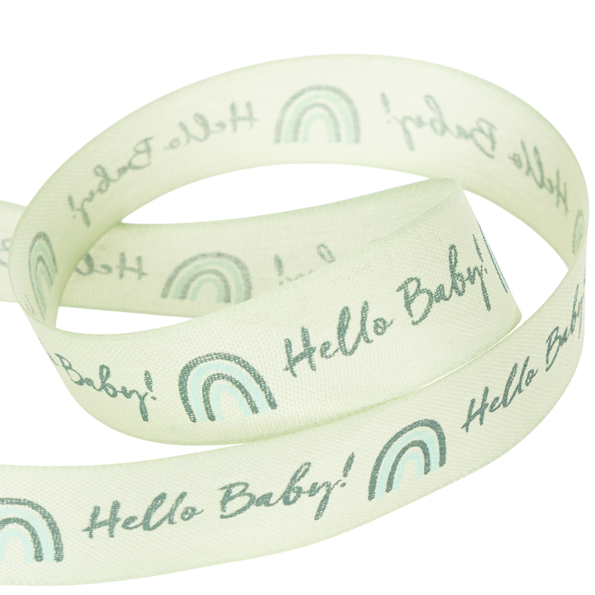 Nom du produit : Ruban cadeau Hello Baby, ruban décoratif vert 25 mm 16 m