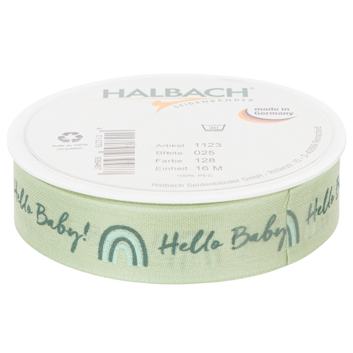Ruban cadeau Hello Baby, ruban décoratif vert 25 mm 16 m