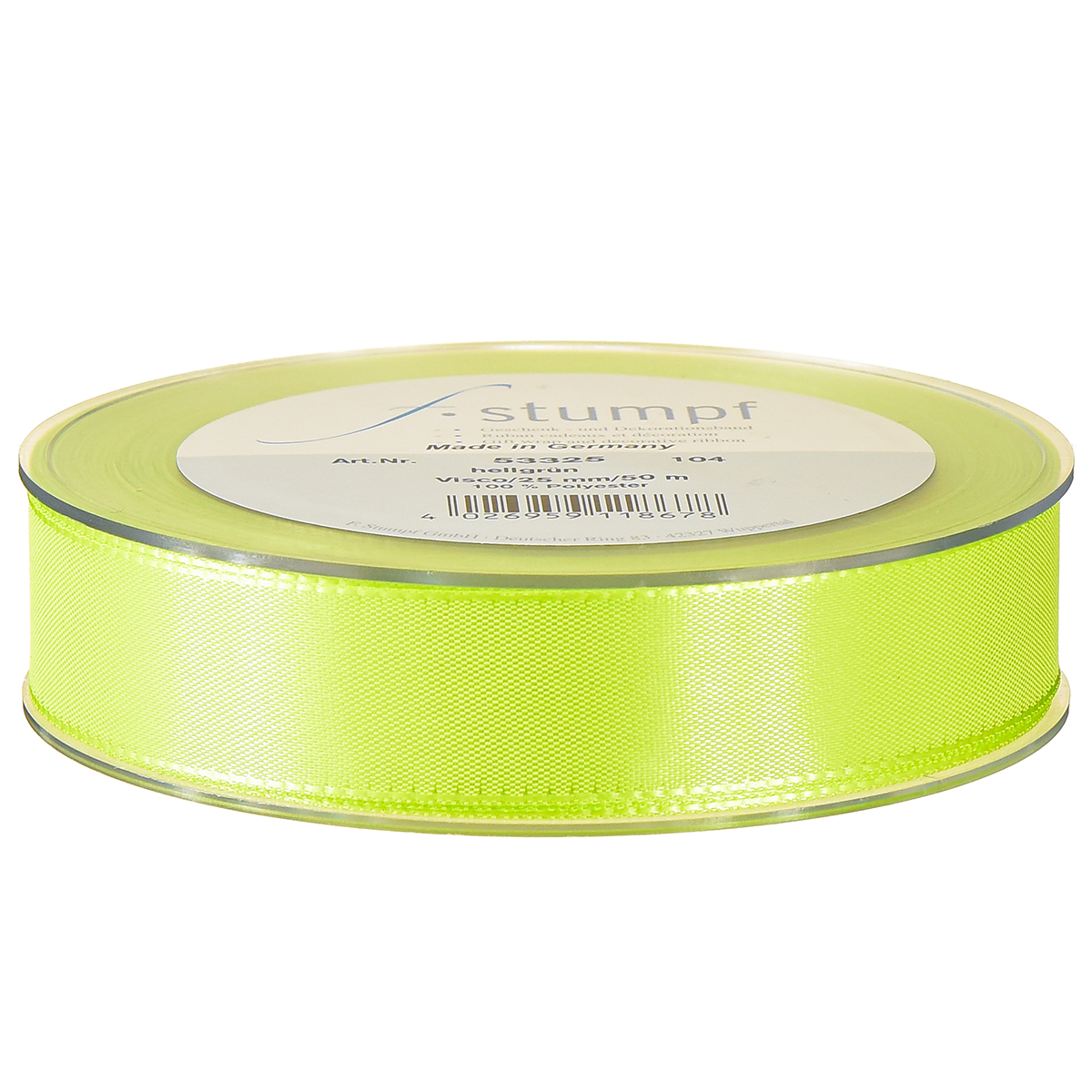 Das Geschenkband und Dekorationsband in Limettengrün ist in etwa 25 Millimeter breit und circa 50 Meter lang.