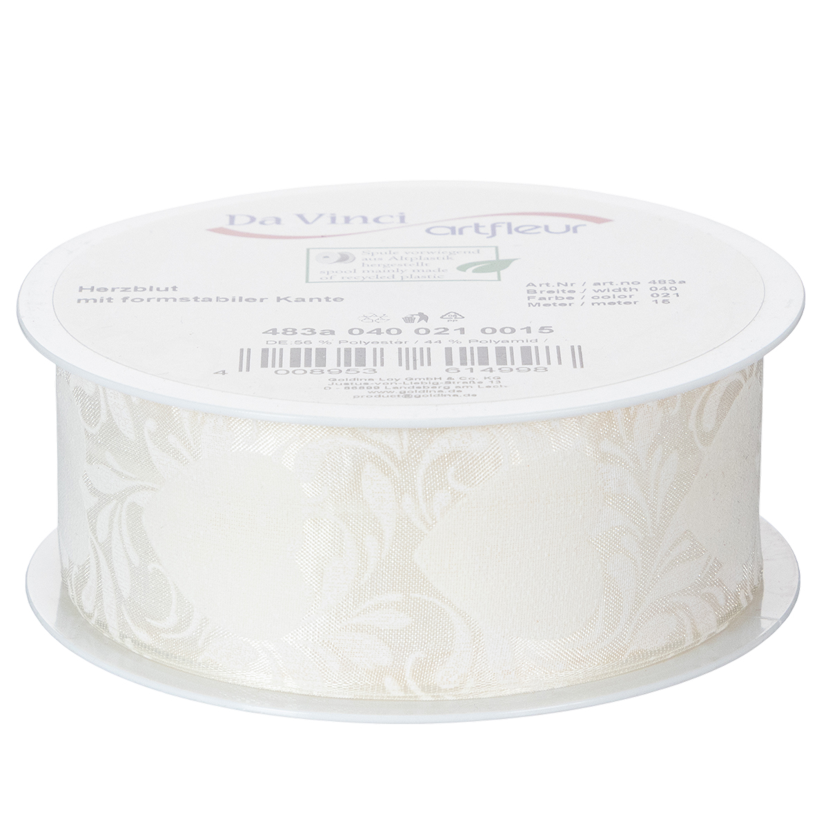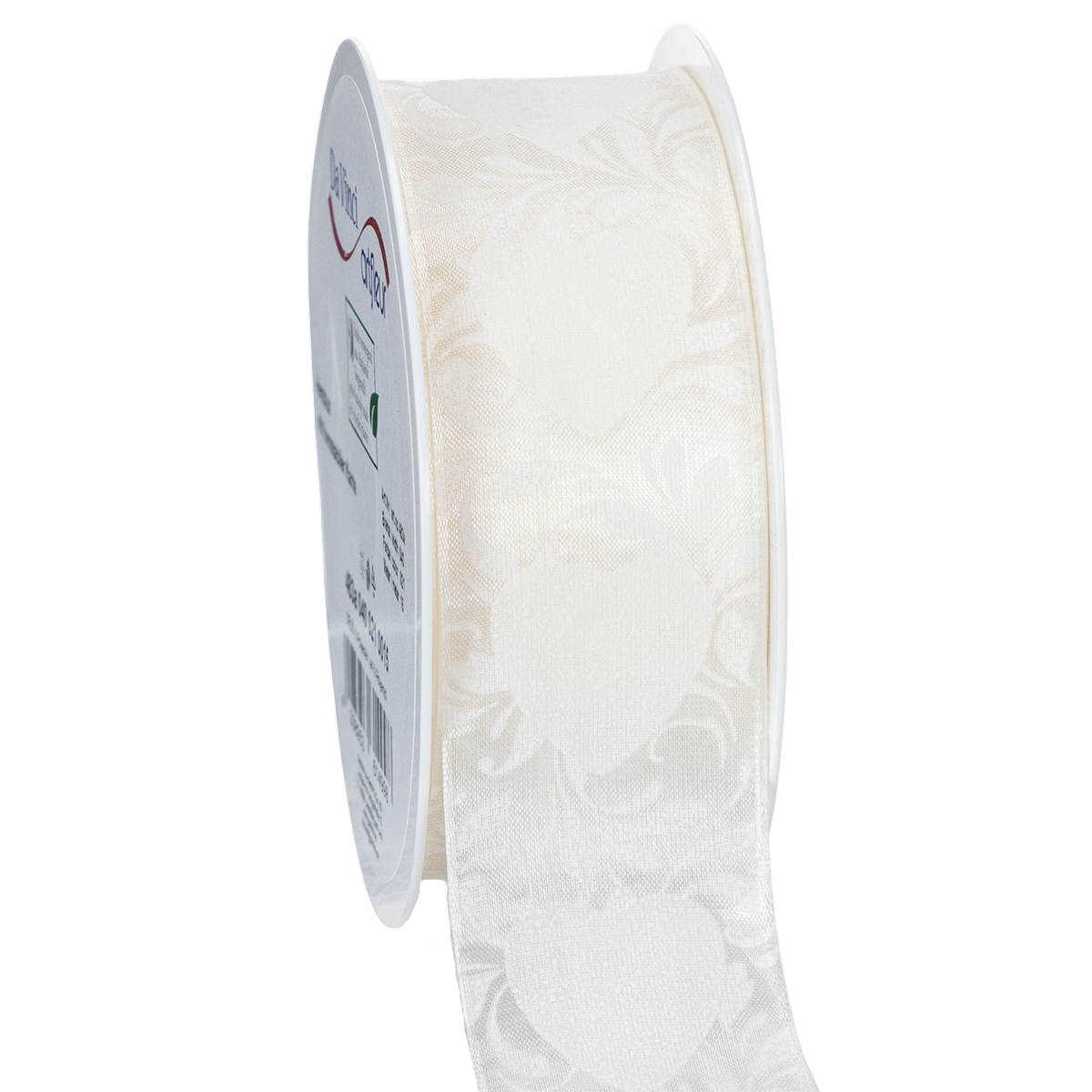 Nom du produit : Ruban d'organza crème, ruban décoratif à cœurs, 40 mm de large, 15 m de long