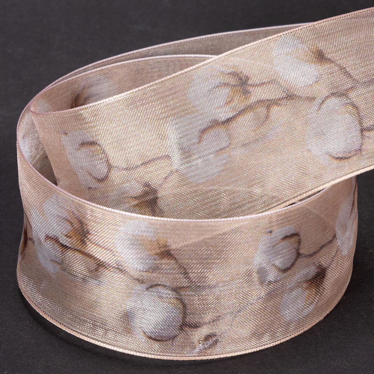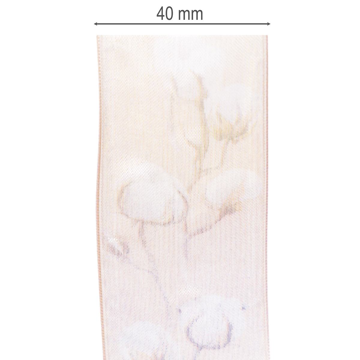 Ruban d'organza, fleurs de coton, ruban décoratif, rose, 40 mm, 15 m