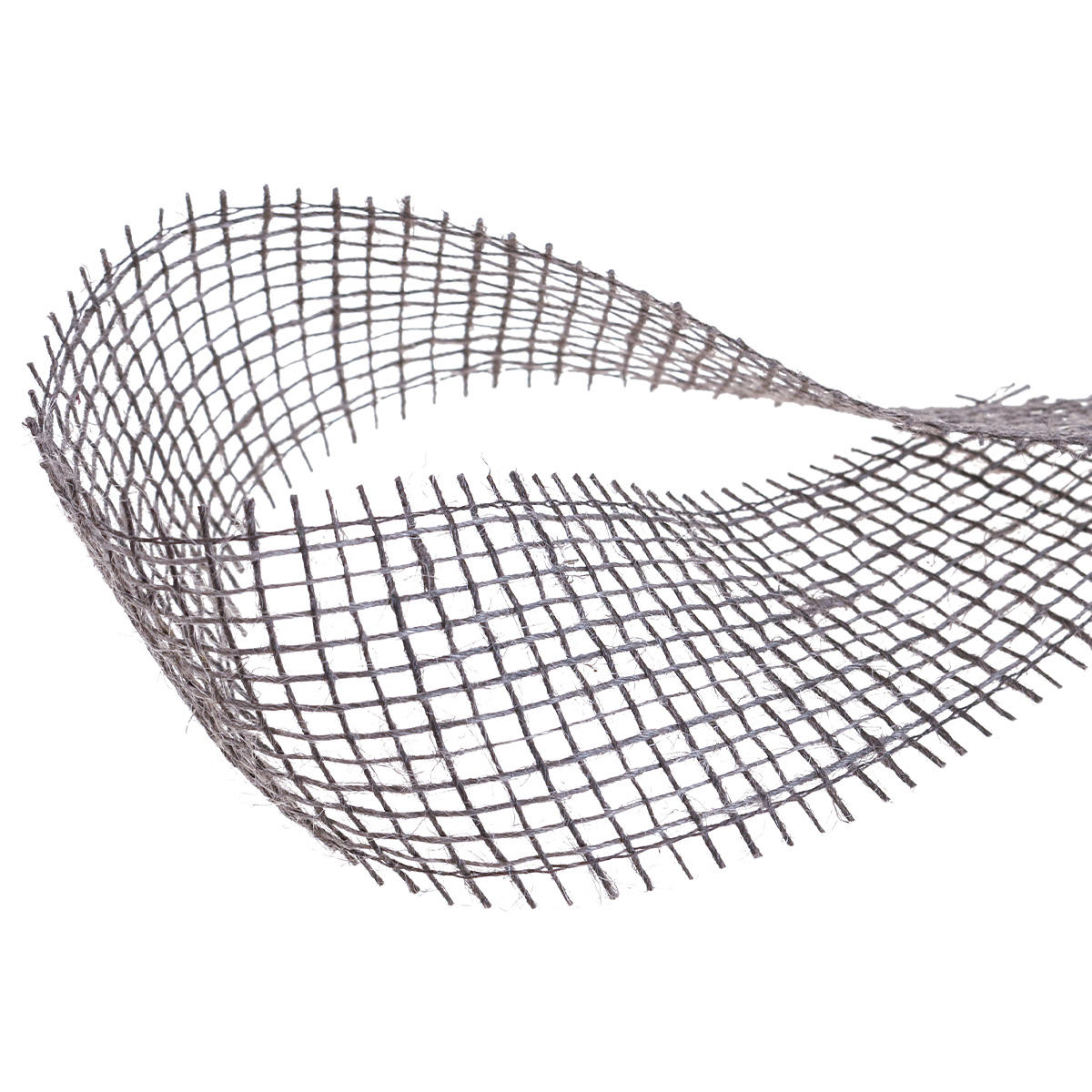 Tussen de gekruiste jutevezels onthult het decoratieve lint de achtergrond en laat het licht door. Het is daarom ideaal om op te naaien, te lijmen of om bloemstukken en cadeaus op een rustieke manier vast te binden.