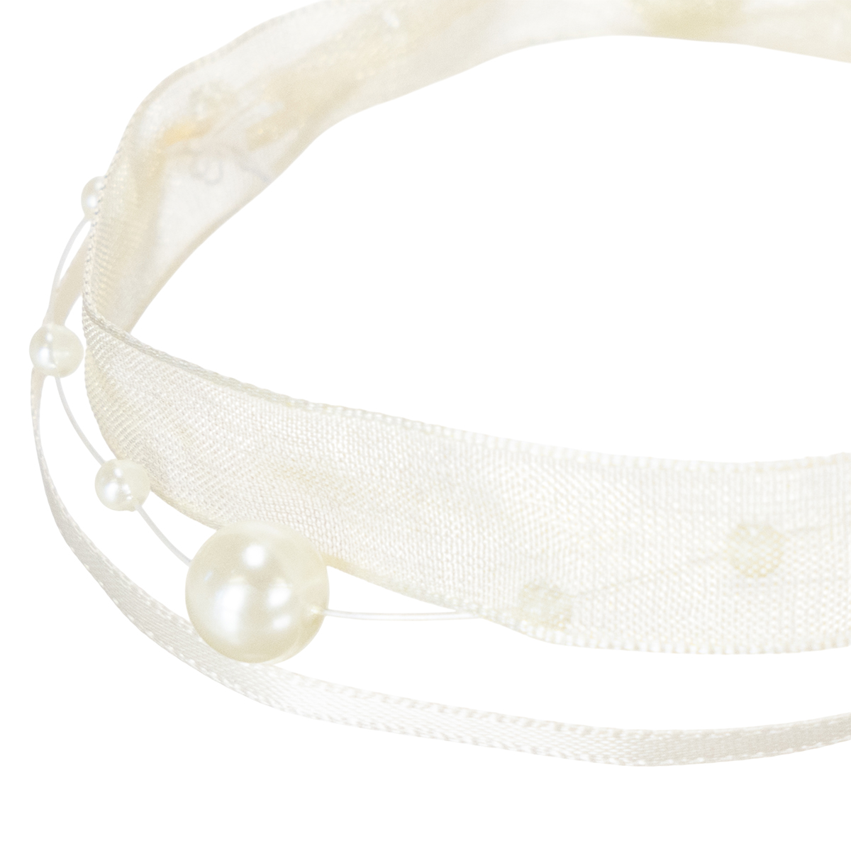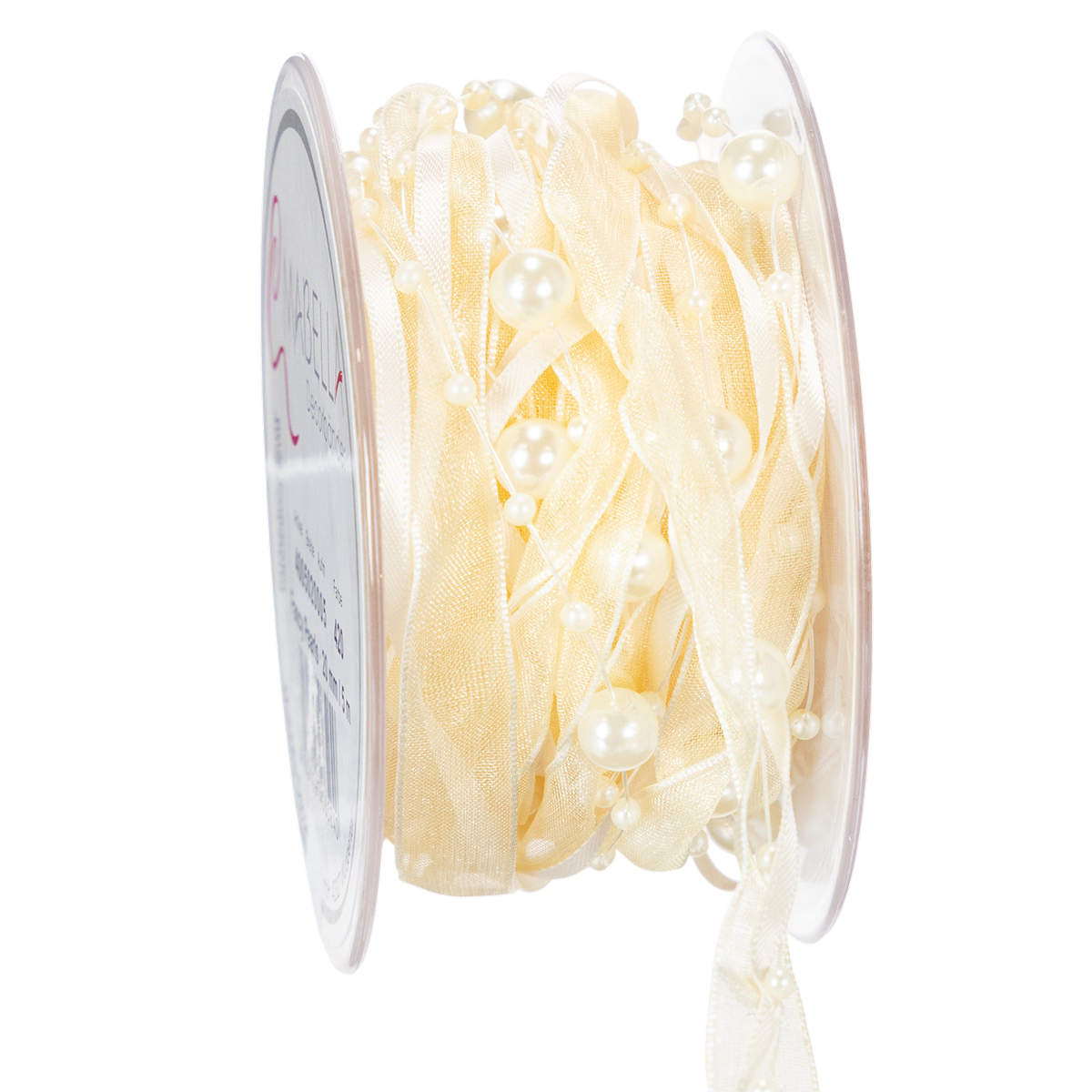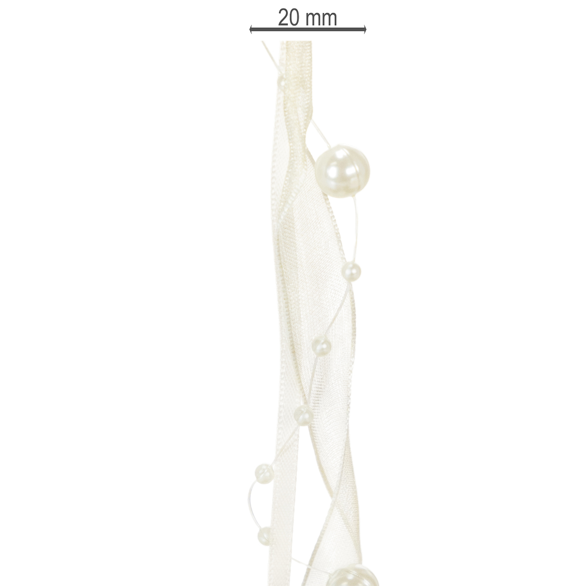 Decoratief lint met parels, crèmekleurig, 20 mm, 5 m