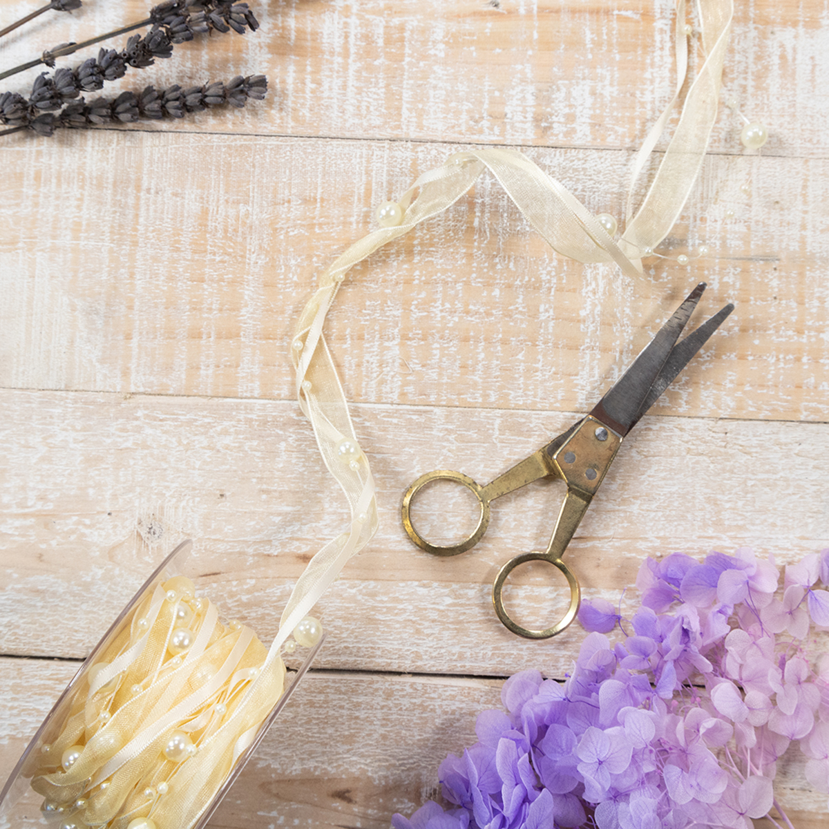 Nom du produit : Ruban décoratif perlé, couleur crème, 20 mm, 5 m