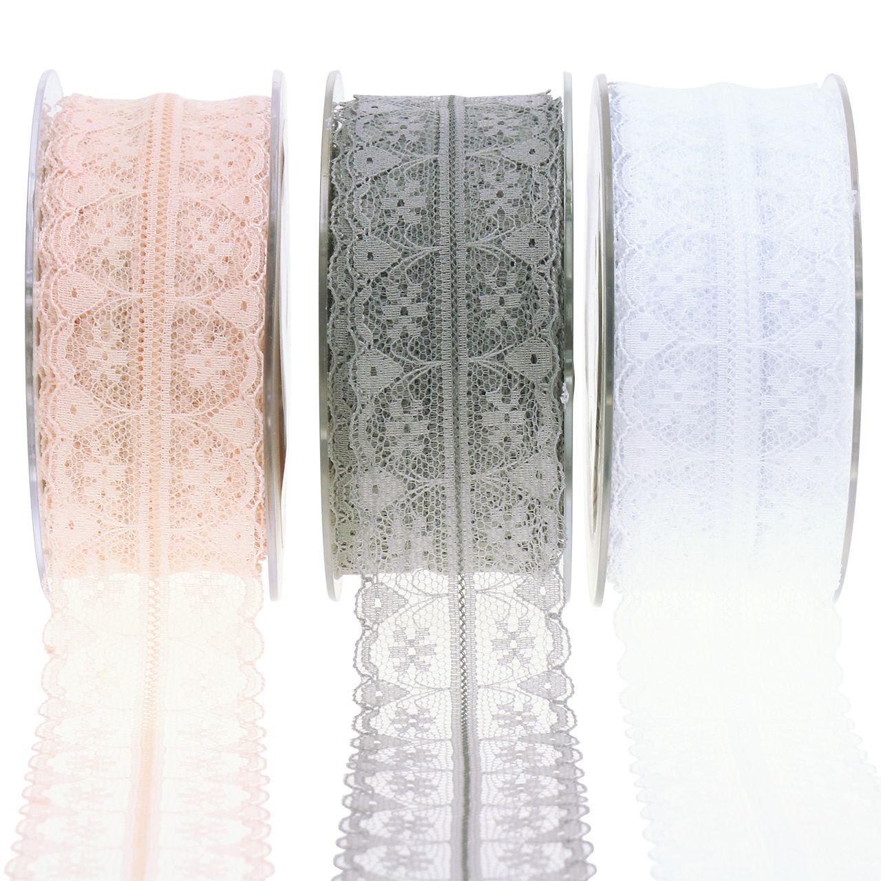 Idéal pour créer une ambiance vintage! Ce ruban de dentelle exclusif a été traité avec une très grande qualité et impressionne par son motif attrayant en trois couleurs différentes. Avec l'onglet à droite, vous pouvez choisir entre le blanc, le gris et le rose. Délicat et délicat, le noble ruban décoratif devient un accessoire ludique et romantique dans la décoration du mariage, une déco Shabby Chic ou tout simplement un matériau d’artisanat universel au charme nostalgique.