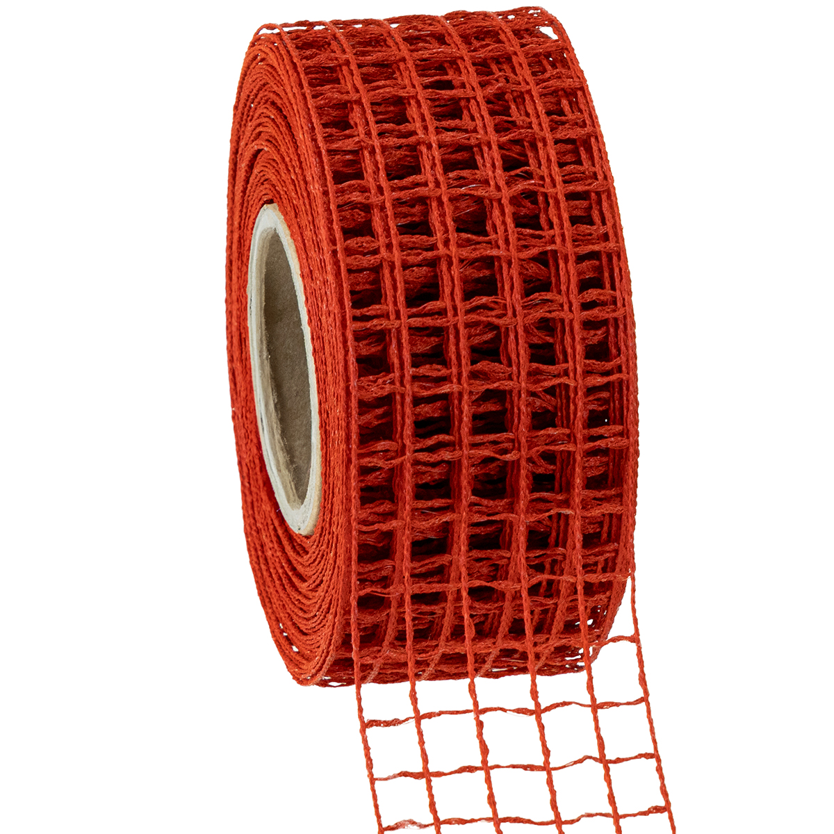 Wenn Sie einen Blumenstrauß zum Valentinstag oder zum Muttertag originell verzieren möchten, dann greifen Sie zu diesem hochwertigen Gitterband in Rot! Das Deko-Band besteht aus einer strapazierfähigen Kunststofffaser, besitzt quadratische Maschen und ist durch einen speziellen Überzug etwas steif. Dadurch behält es leichter die Form, wenn Sie beispielsweise eine Schleife, eine Welle oder eine Spirale mit dem Stoffband herstellen möchten.Sie haben auch die Möglichkeit, das Band einzuschneiden, um einerseits bestimmte Formen vorzugeben und um andererseits das Dekoband ineinander zu verhaken, da die festen Fasern prima in die Maschen gesteckt werden können. So können Sie beispielsweise Ringe formen, die dann über einen Blumenstiel oder einen Ast gesteckt werden können. Außerdem können Sie auch farbige Pappe mit dem Gitter bekleben und dann zum Beispiel ein Herz daraus gestalten, das dann in einem Muttertagsgesteck besonders schön wirkt. Selbstverständlich können Sie das Band auch für eine Weihnachtsdekoration nutzen und damit zum Beispiel einen Adventskranz umwickeln!