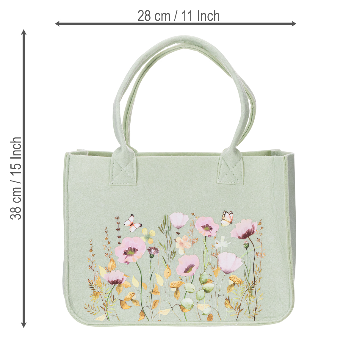 Deze tas is gemaakt van stevig vilt in een elegante groene kleur en brengt een vleugje natuur en zomerse charme. Het met zorg ontworpen bloemenpatroon op de voorkant geeft de tas een unieke uitstraling die doet denken aan bloeiende zomerweiden. Of het nu voor dagelijkse boodschappen is, als stijlvolle metgezel op kantoor, of zelfs als praktische shopper tijdens een winkeluitstapje, deze tas is geschikt voor bijna elke gelegenheid. En het beste van alles? Hij biedt voldoende ruimte voor alles wat je nodig hebt voor dagelijks gebruik of uitstapjes.