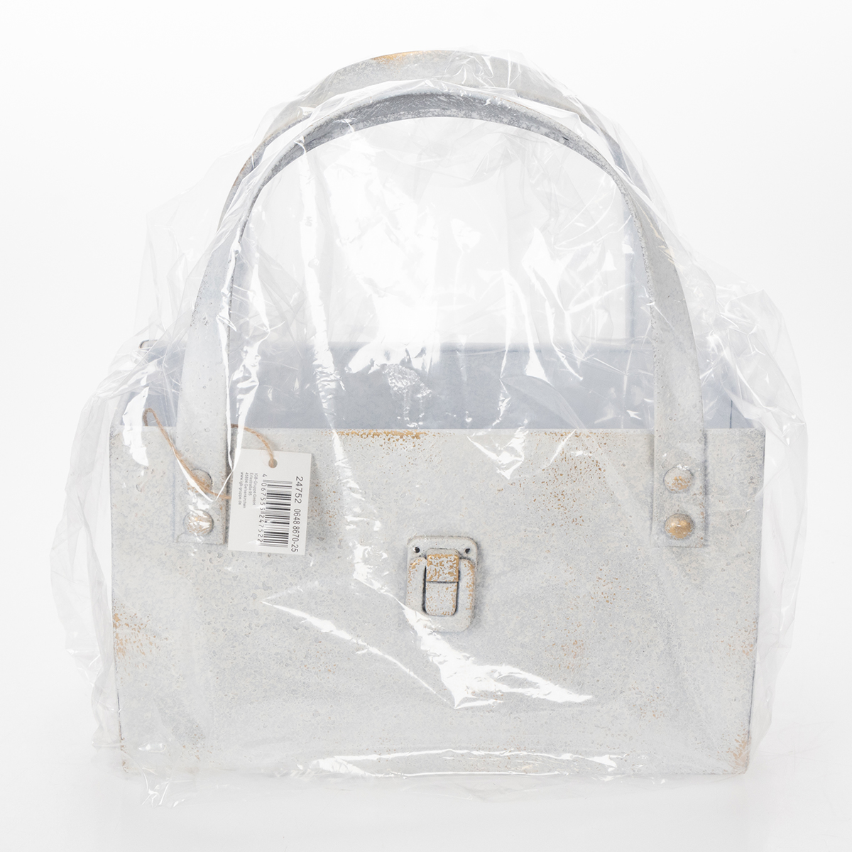 Deze metalen tas combineert modern design met tijdloze, rustieke charme. Het stevige handvat maakt de tas niet alleen gemakkelijk te dragen, maar is ook een echte blikvanger. De licht verouderde, vintage-achtige afwerking geeft een bijzonder stijlvolle touch en past prachtig bij diverse interieurstijlen, van landelijk tot industrieel. Wilt u deze decoratieve metalen tas als plantenbak gebruiken? Geen probleem! Hij is ideaal voor het stijlvol presenteren van kleine bloemstukken of vetplanten. Seizoensgebonden accenten, zoals herfstdecoraties met pompoenen of een kerstarrangement gevuld met dennentakken, zien er ook fantastisch uit in deze tas. Even praktisch: gebruik de tas als organizer voor tuingereedschap zoals scharen of handschoenen. Zo blijft alles binnen handbereik en ziet het er aantrekkelijk uit. De neutrale, matte grijze kleur past bij vrijwel elke omgeving en harmoniseert prachtig met andere decoratieve elementen. Combineer de metalen tas bijvoorbeeld met onze eenvoudige glazen vazen of rustieke houten schalen van Floristik24 voor nog meer harmonie in uw interieur. Een echte alleskunner!