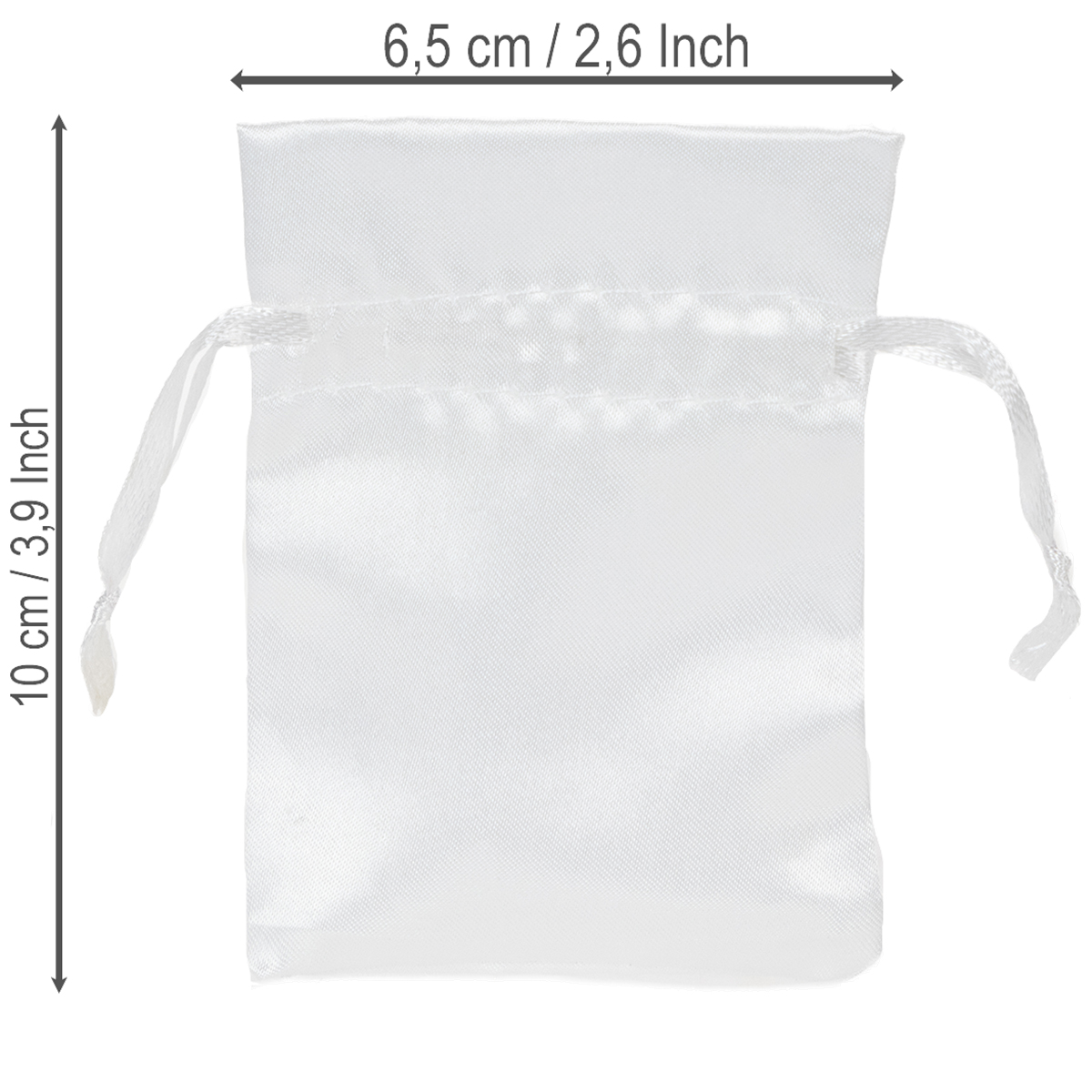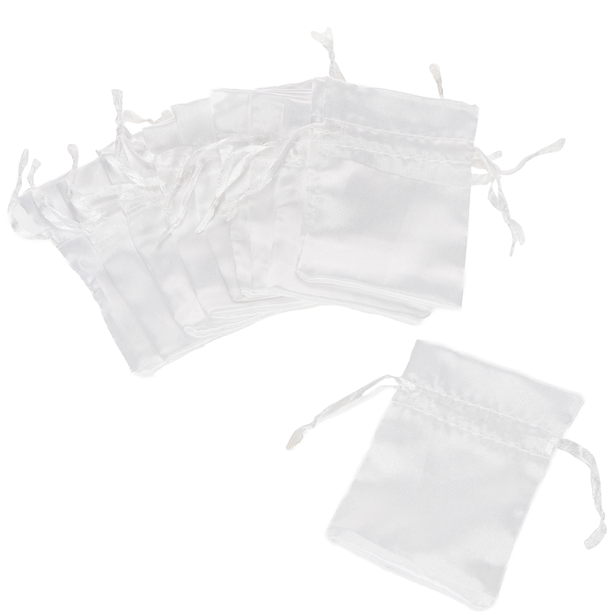 Sachets cadeaux, pochettes en satin blanc, 6,5 x 10 cm, lot de 10