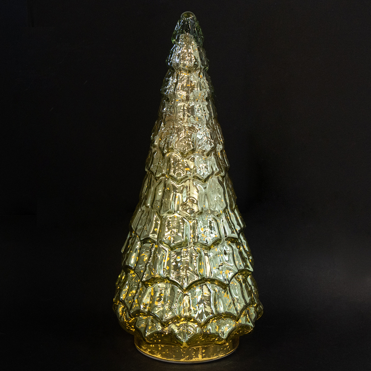 Sapin de Noël avec éclairage LED vintage vert doré 38cm