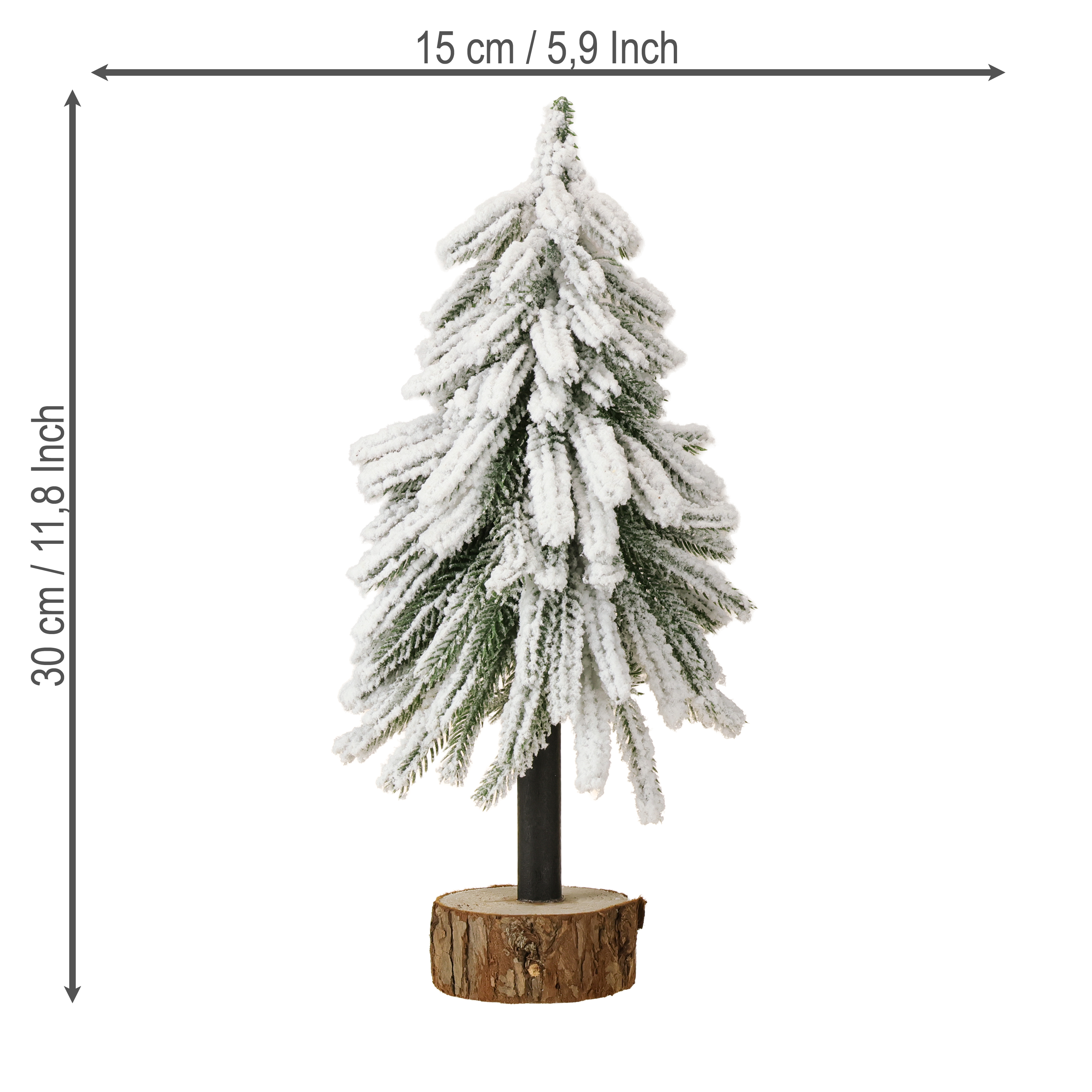 Beschneiter Deko-Tannenbaum auf Holzsockel mit Kunstschnee 30cm